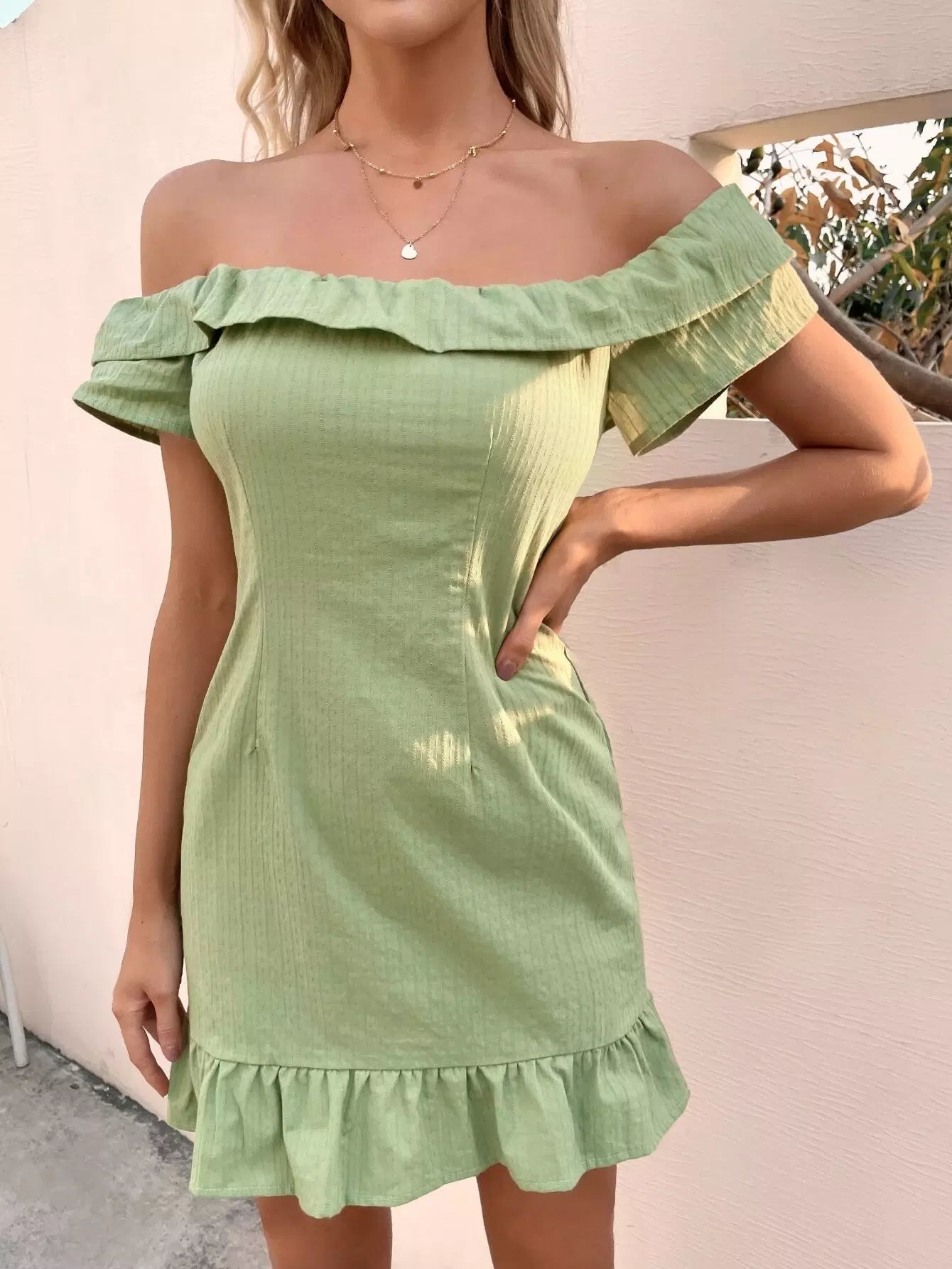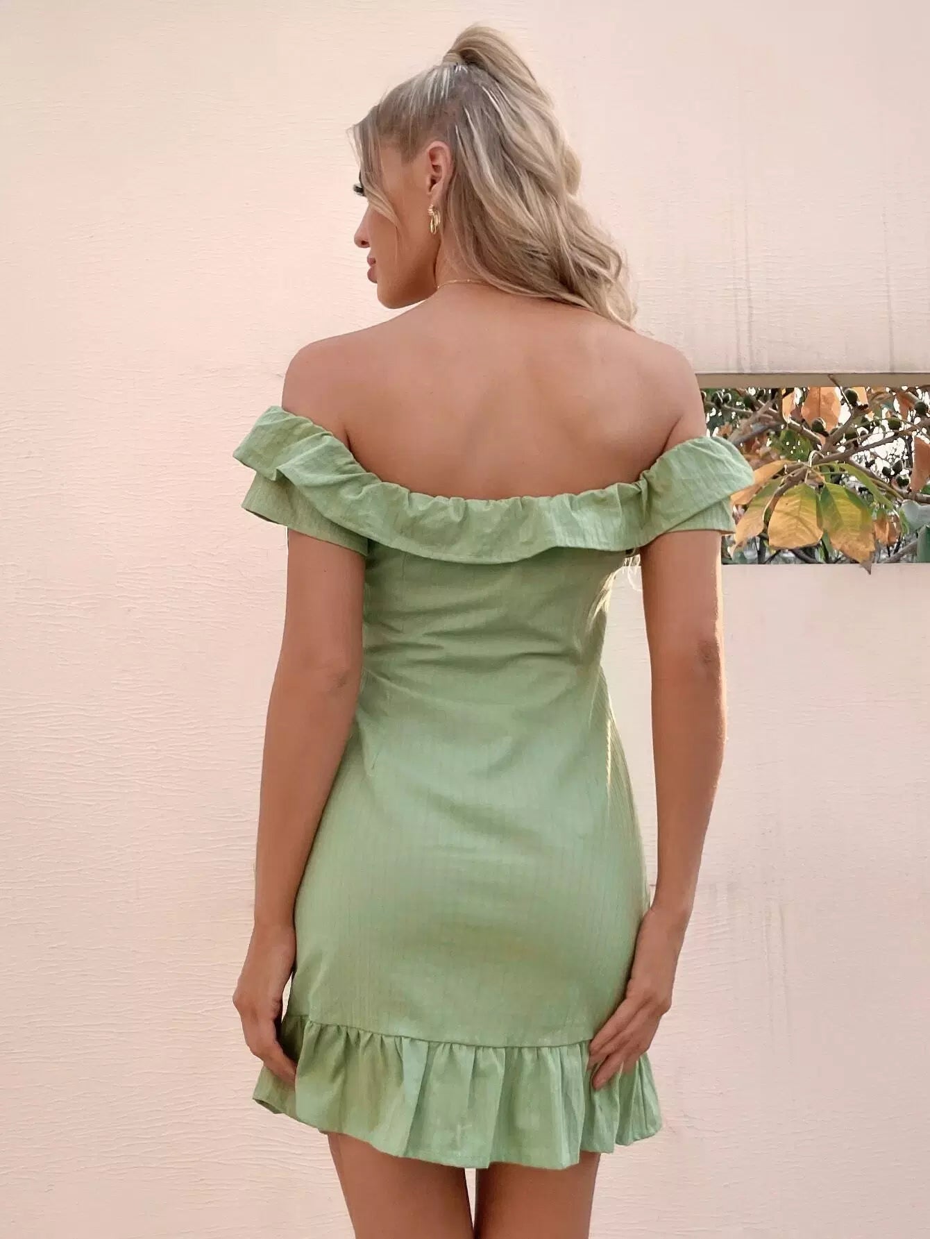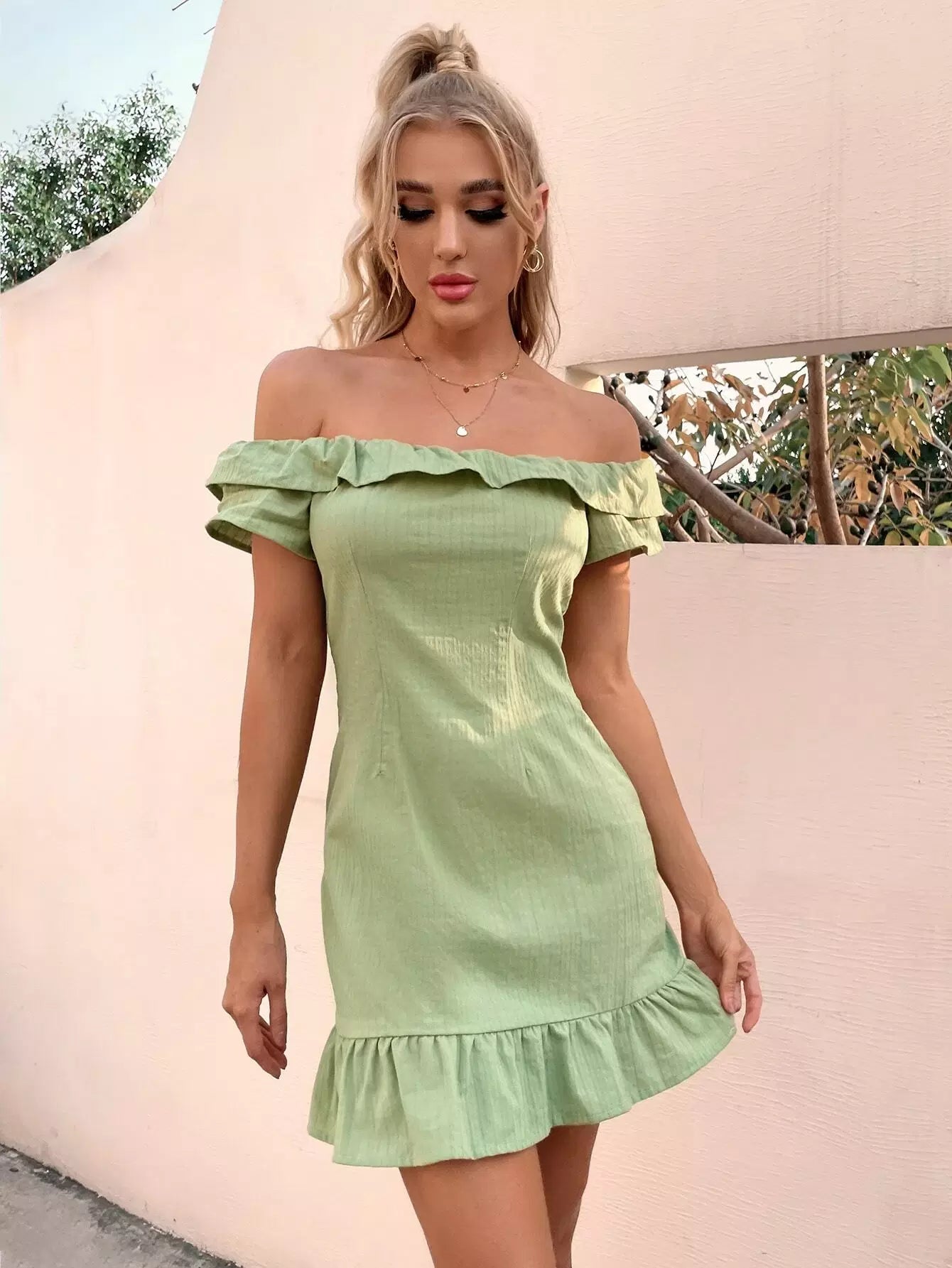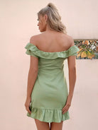 فستان بحافة كشكش مكشكش مكشوف الأكتاف