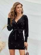 فستان بوديكون مخملي برباط مخملي مطرز باللؤلؤ