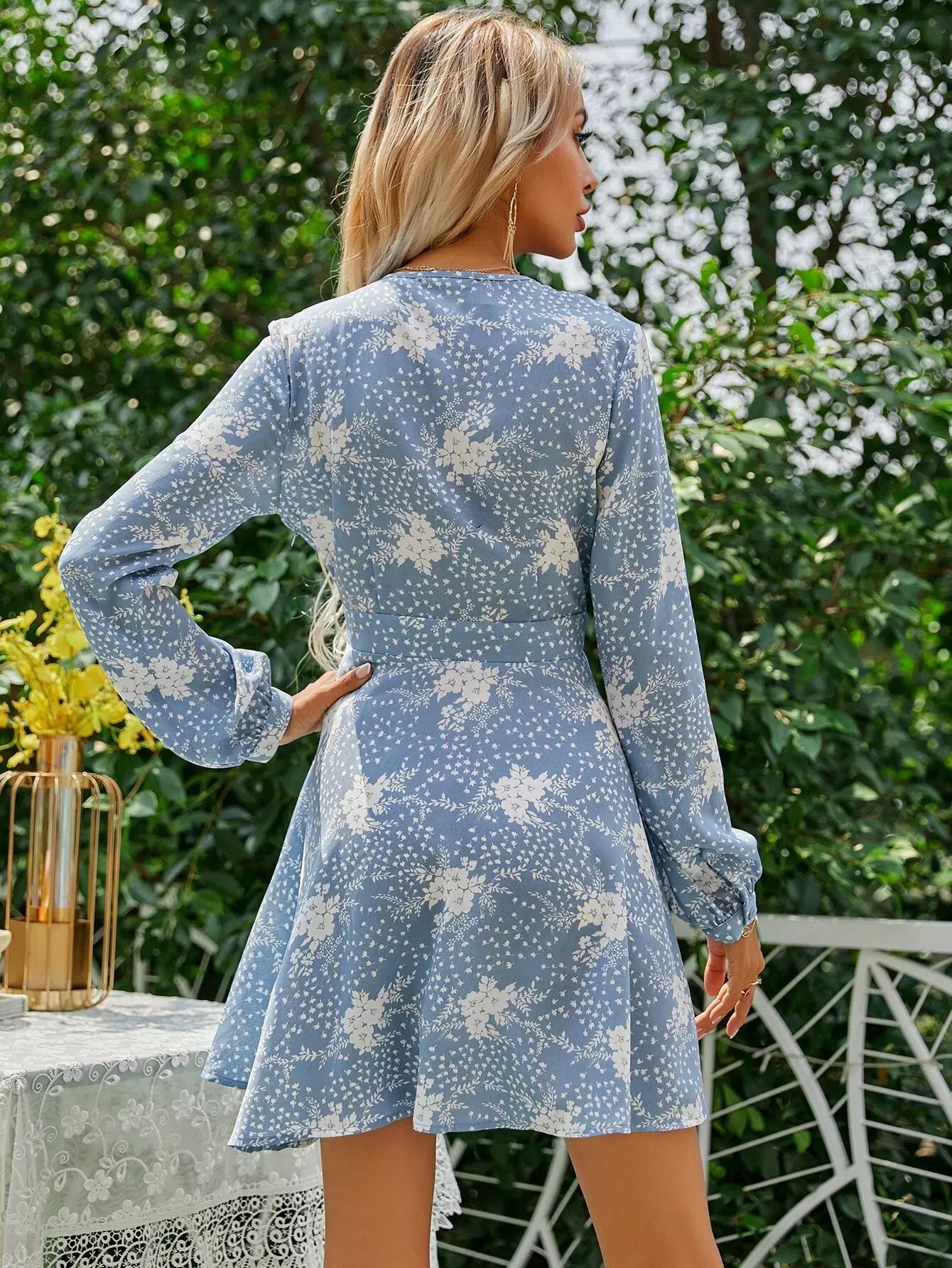 فستان برقبة مكشوف بفتحة رقبة واسعة على شكل حرف A