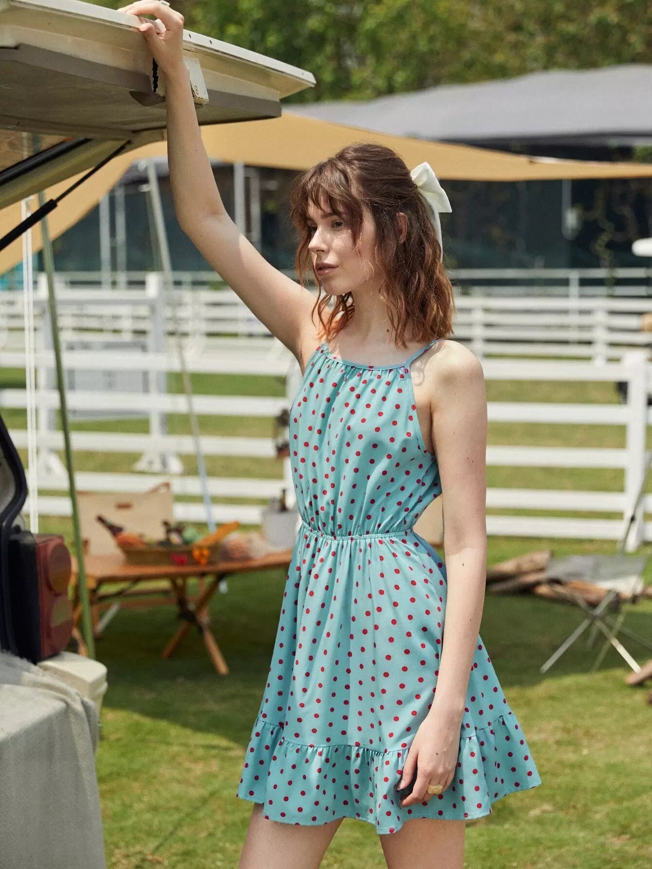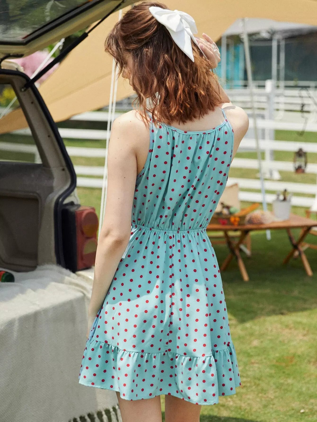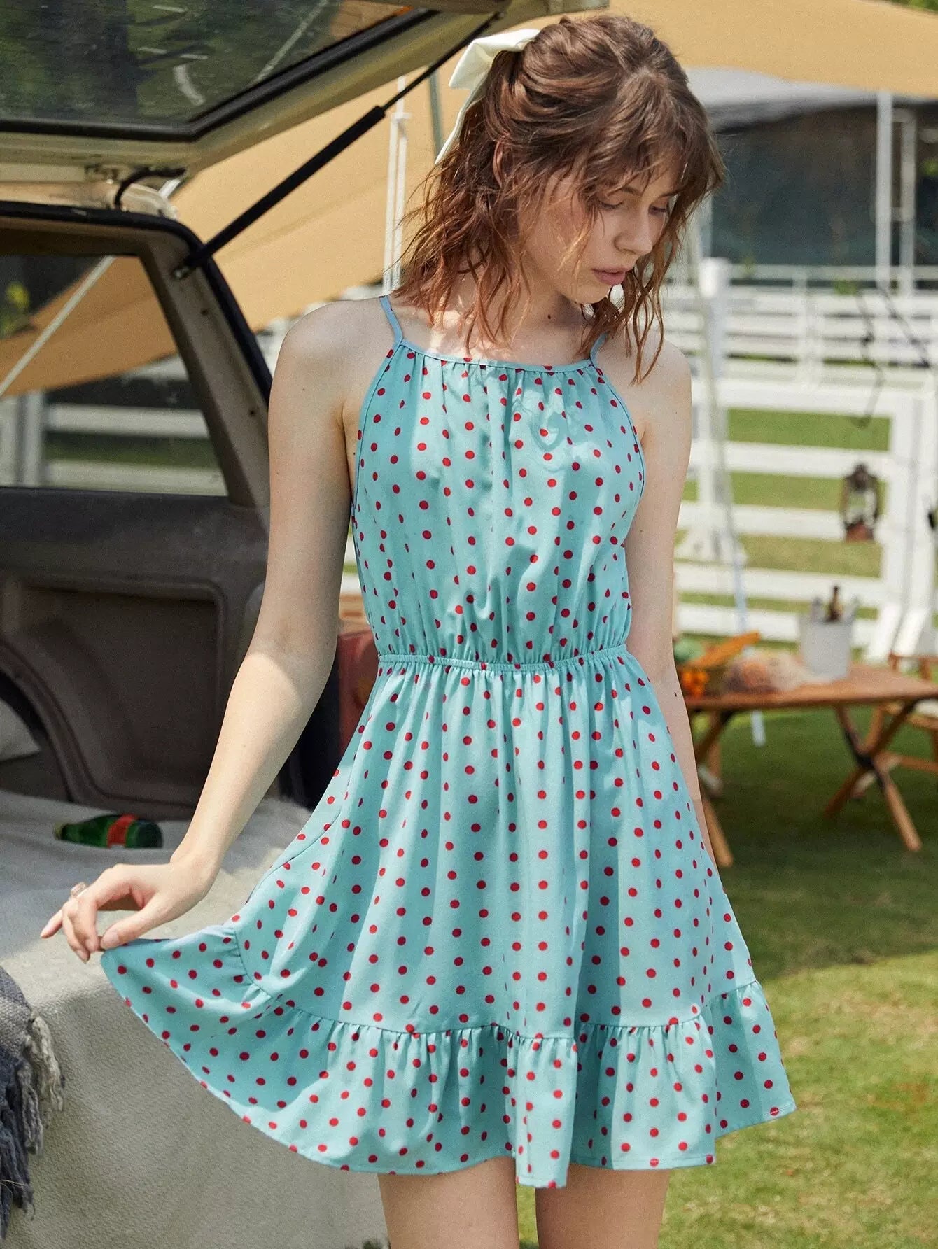 فستان منقط مع كشكشة