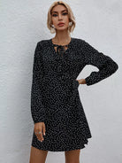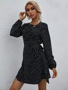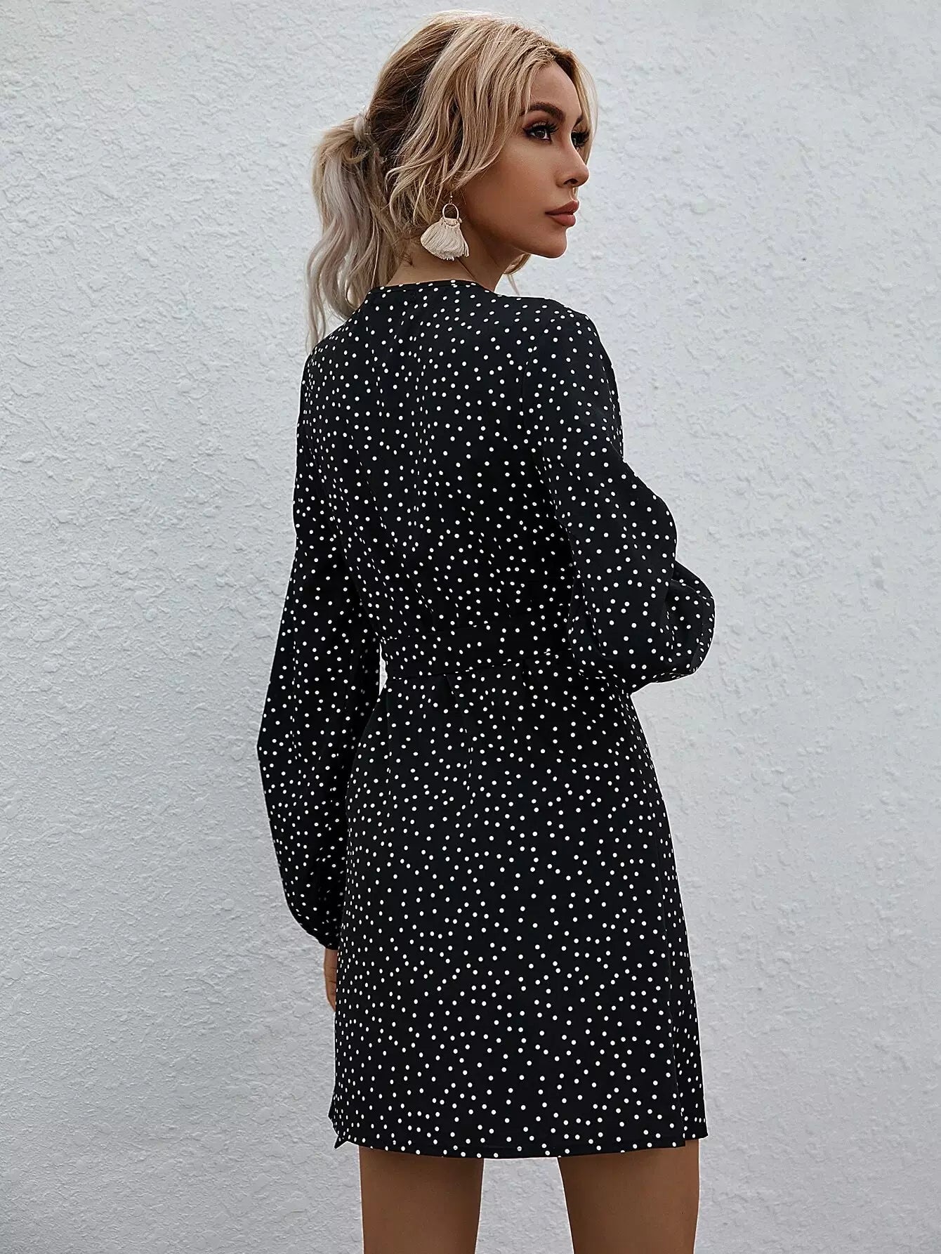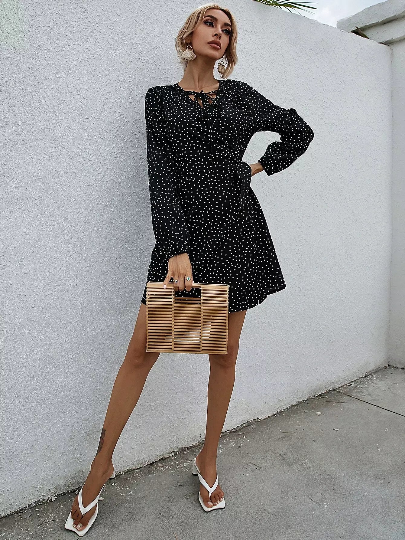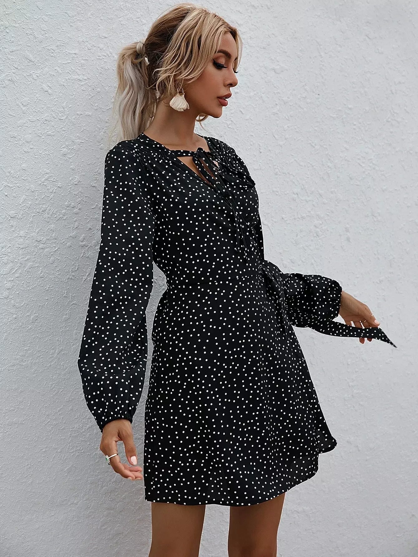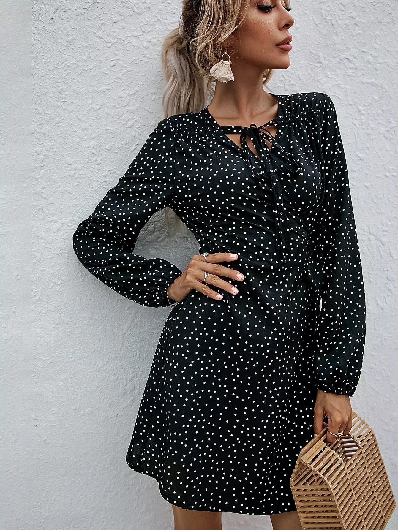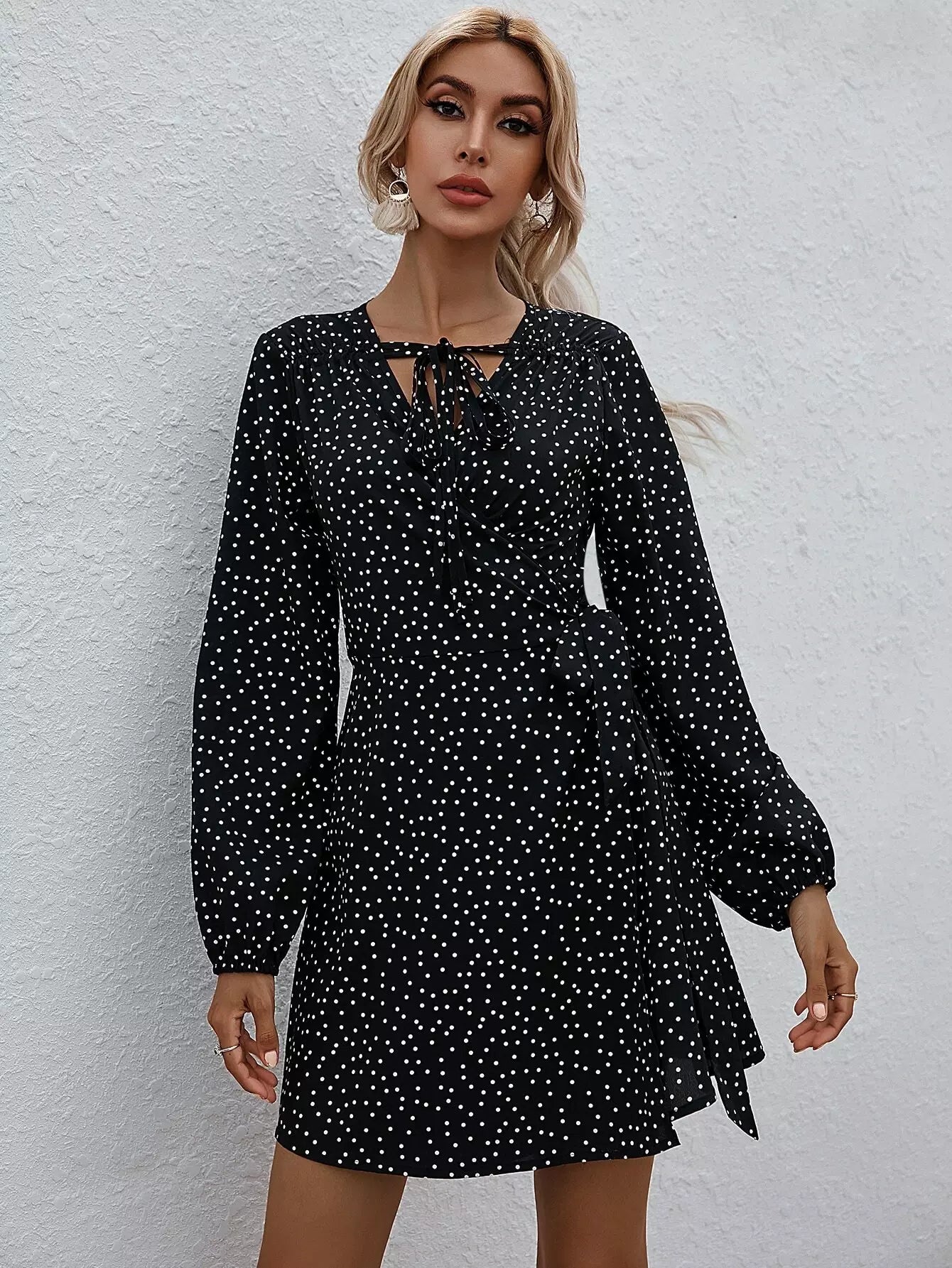 فستان منقّط بربطة عنق منقطة بربطة عنق جانبية