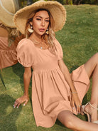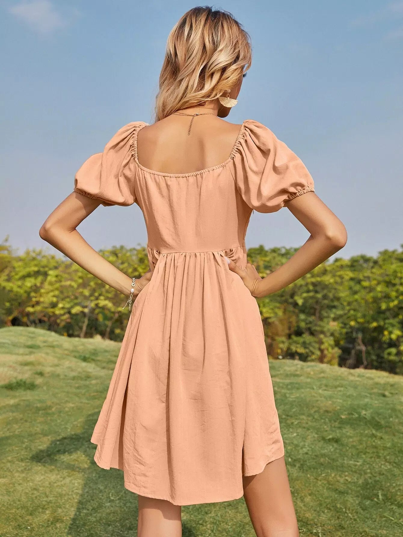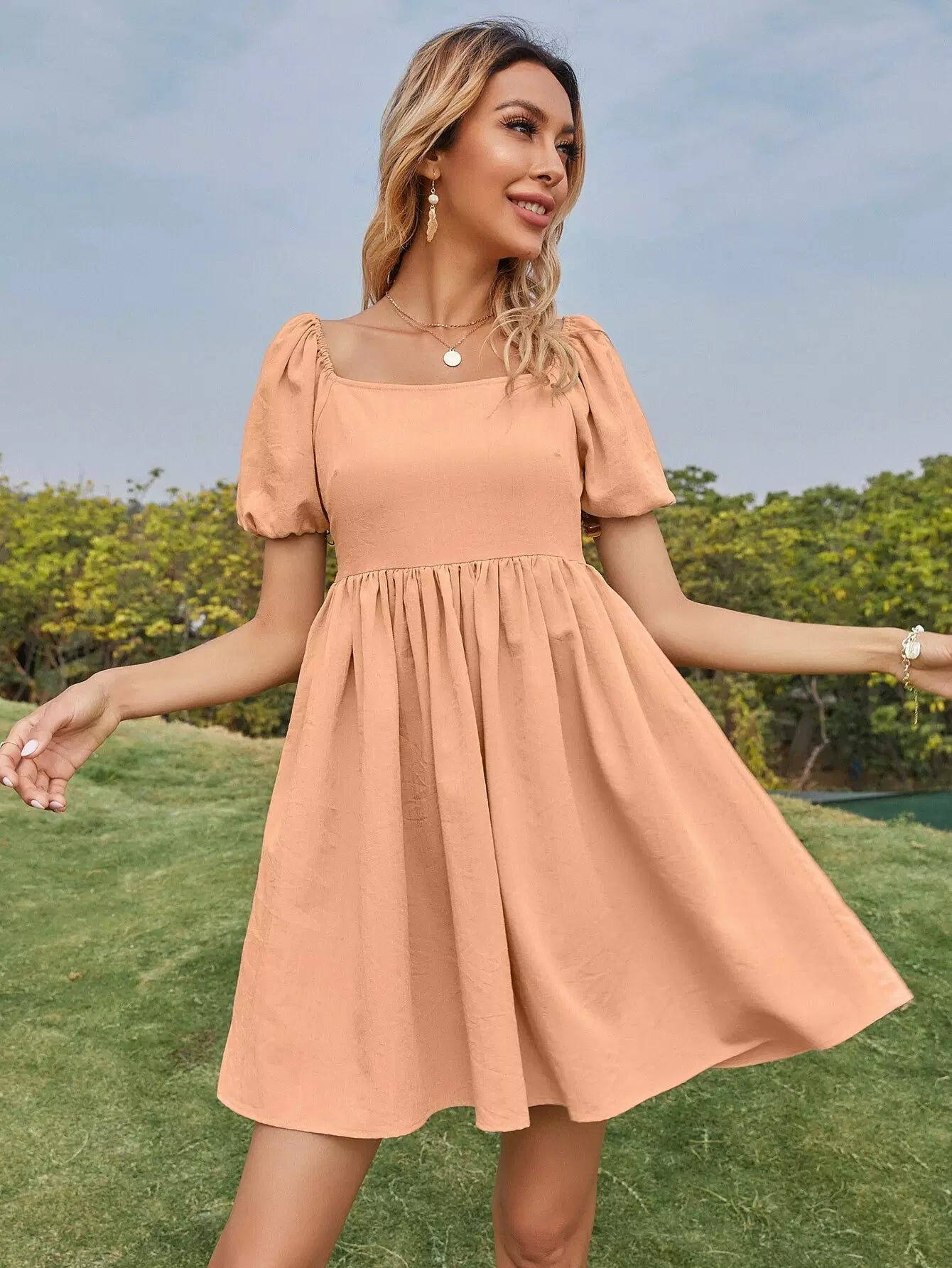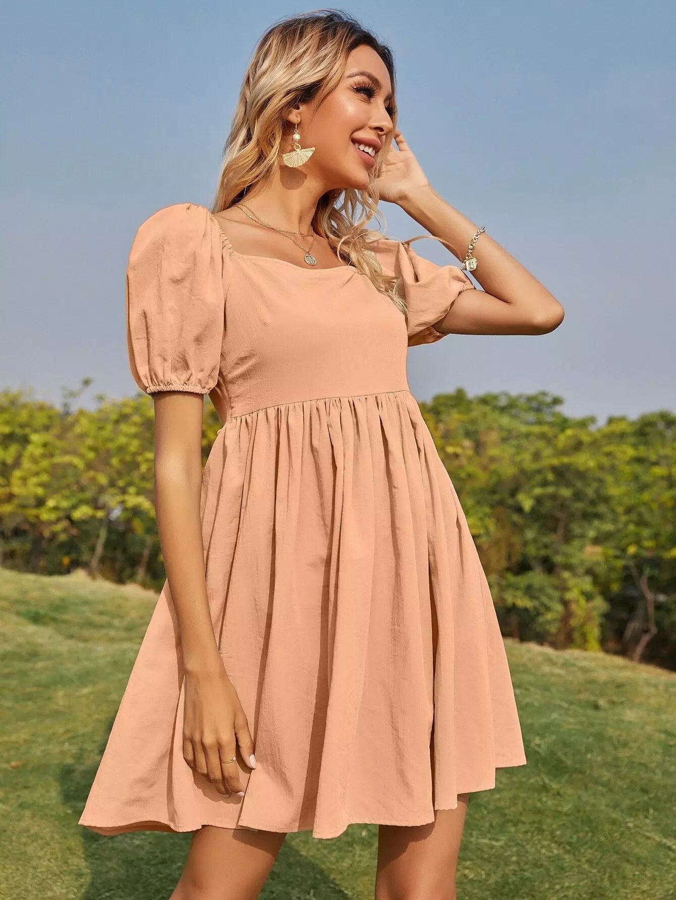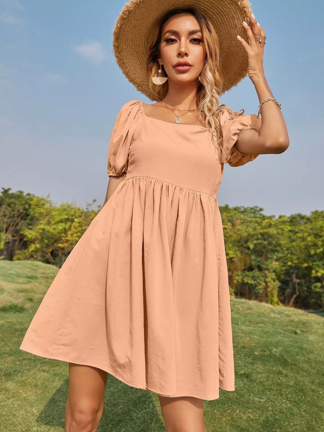 فستان بأكمام منفوشة بياقة مربعة على شكل حرف A