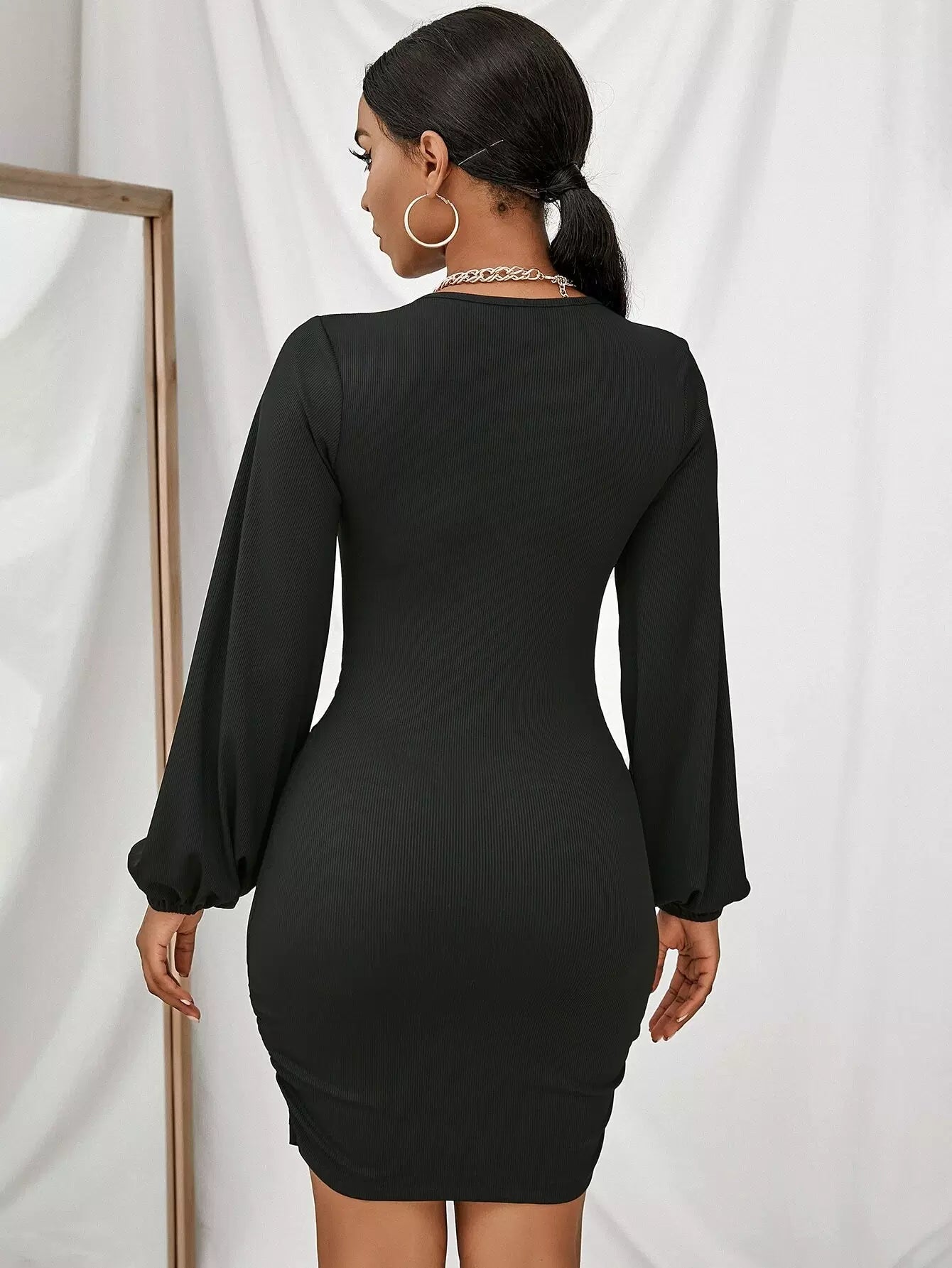 فستان بأكمام مضلعة متماسكة مضلعة بأكمام فانوسية مكشكشة