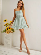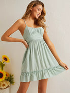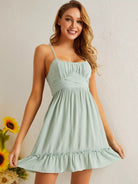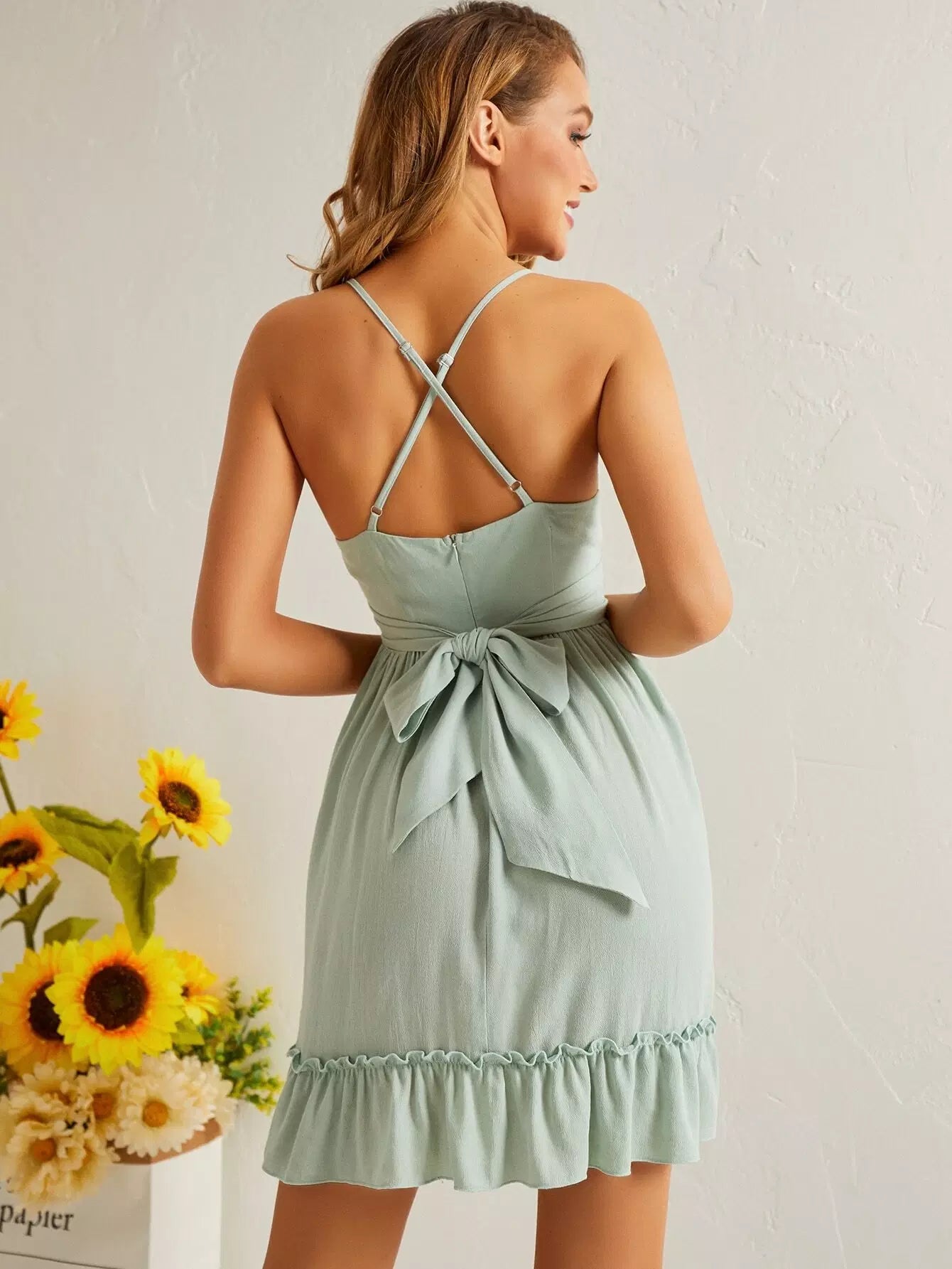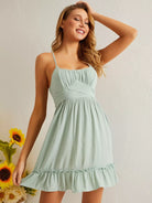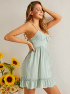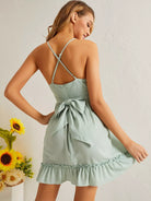 فستان كشكش بحافة كشكش على الصدر ملفوف على الصدر بربطة عنق على الظهر