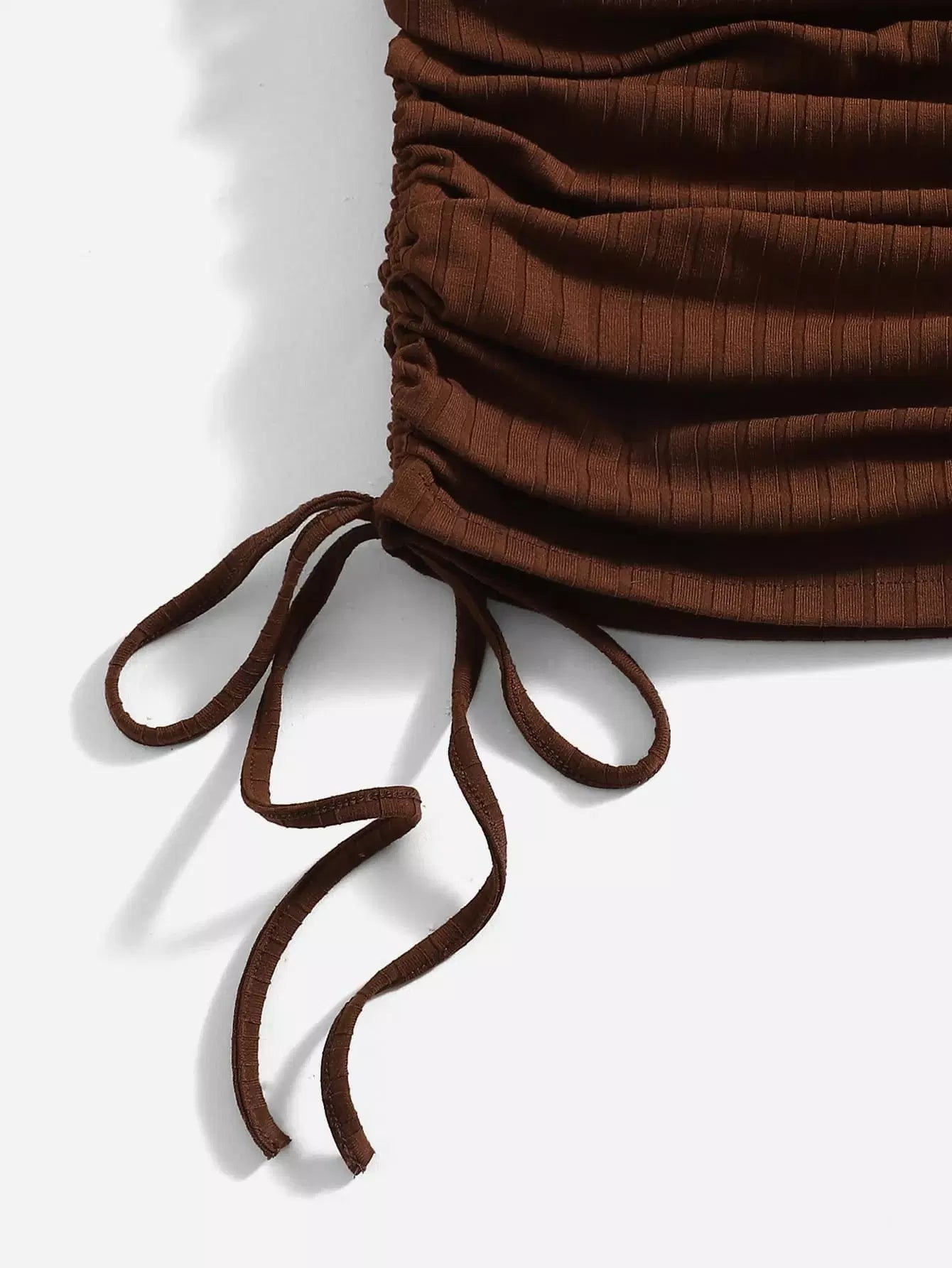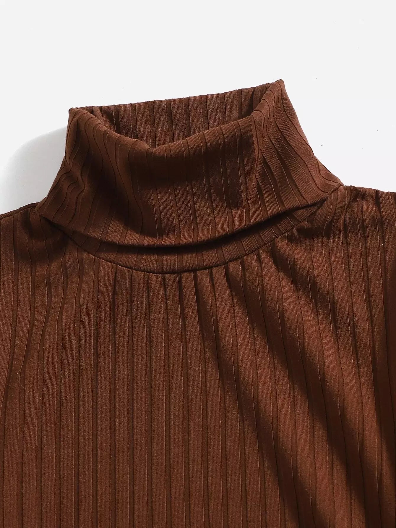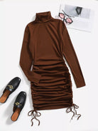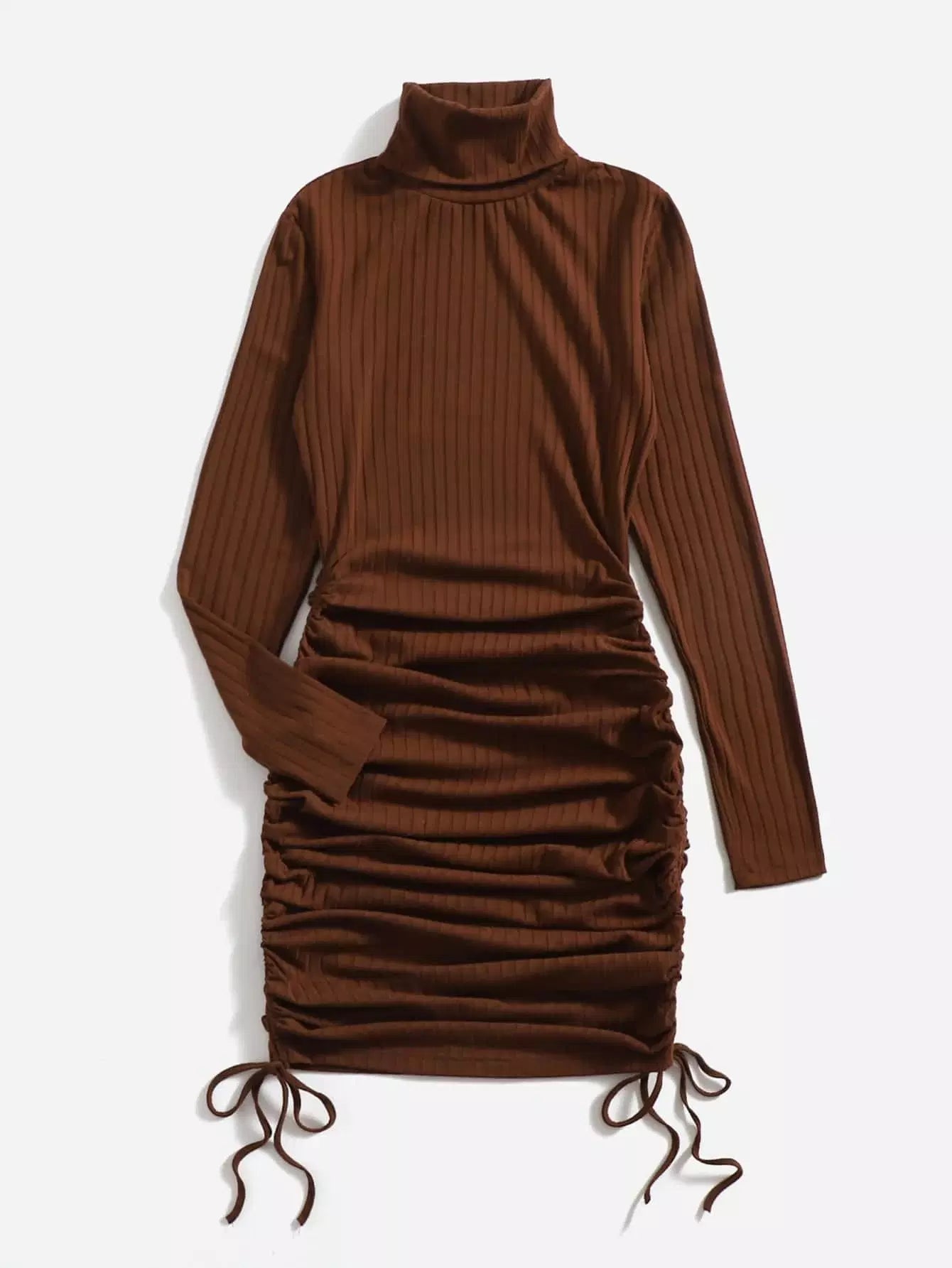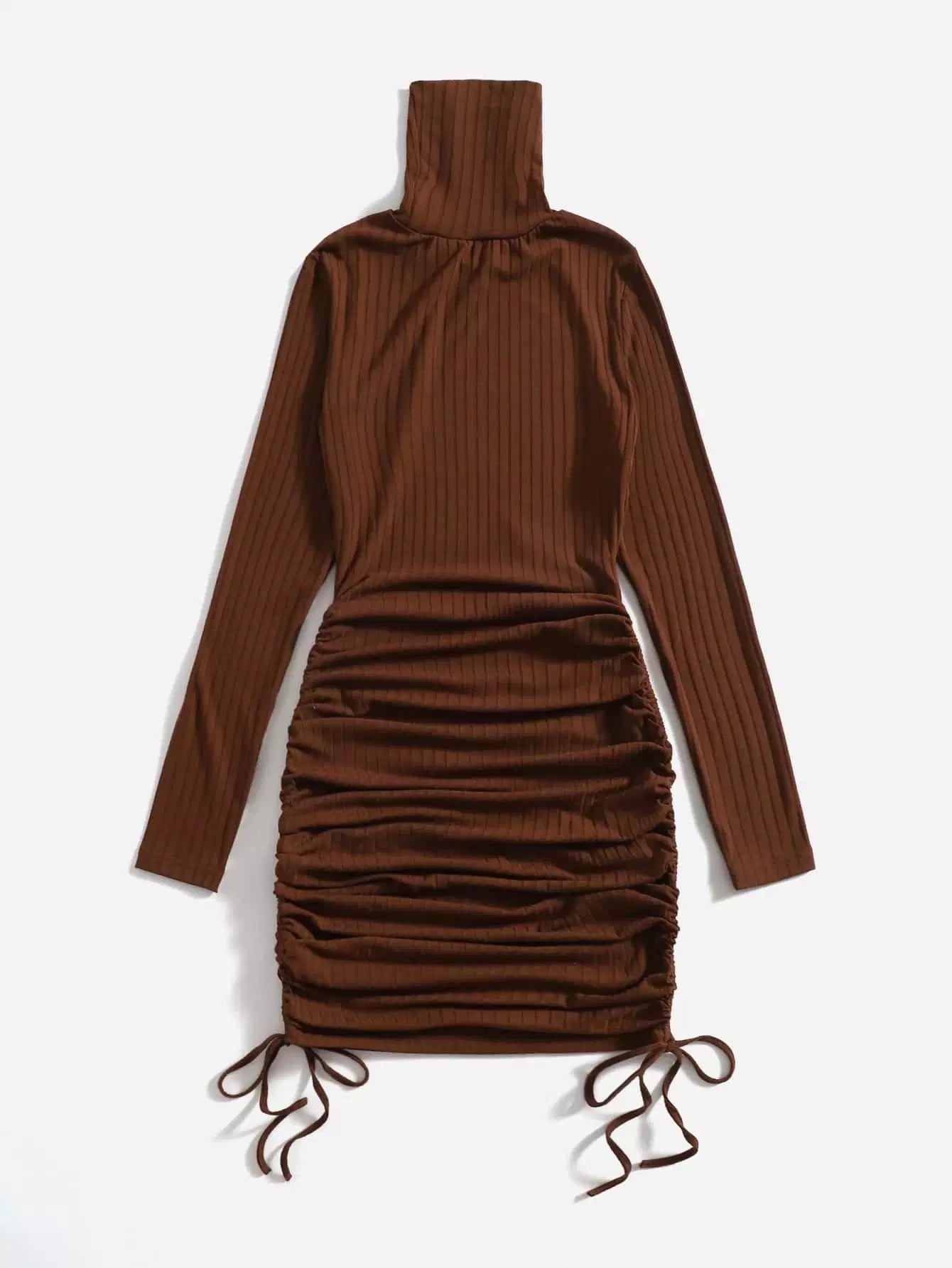 فستان بياقة عالية بفتحة رقبة عالية بتفاصيل مكشكشة