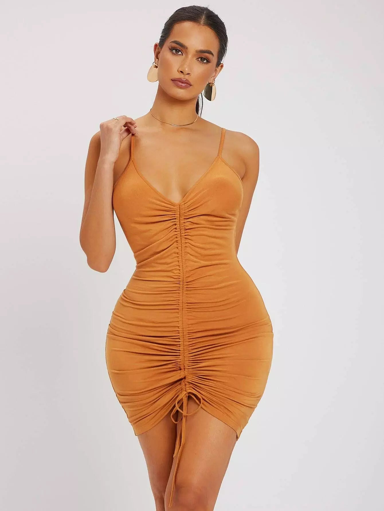فستان مكشكش برباط برباط على شكل عقدة مكشكشة