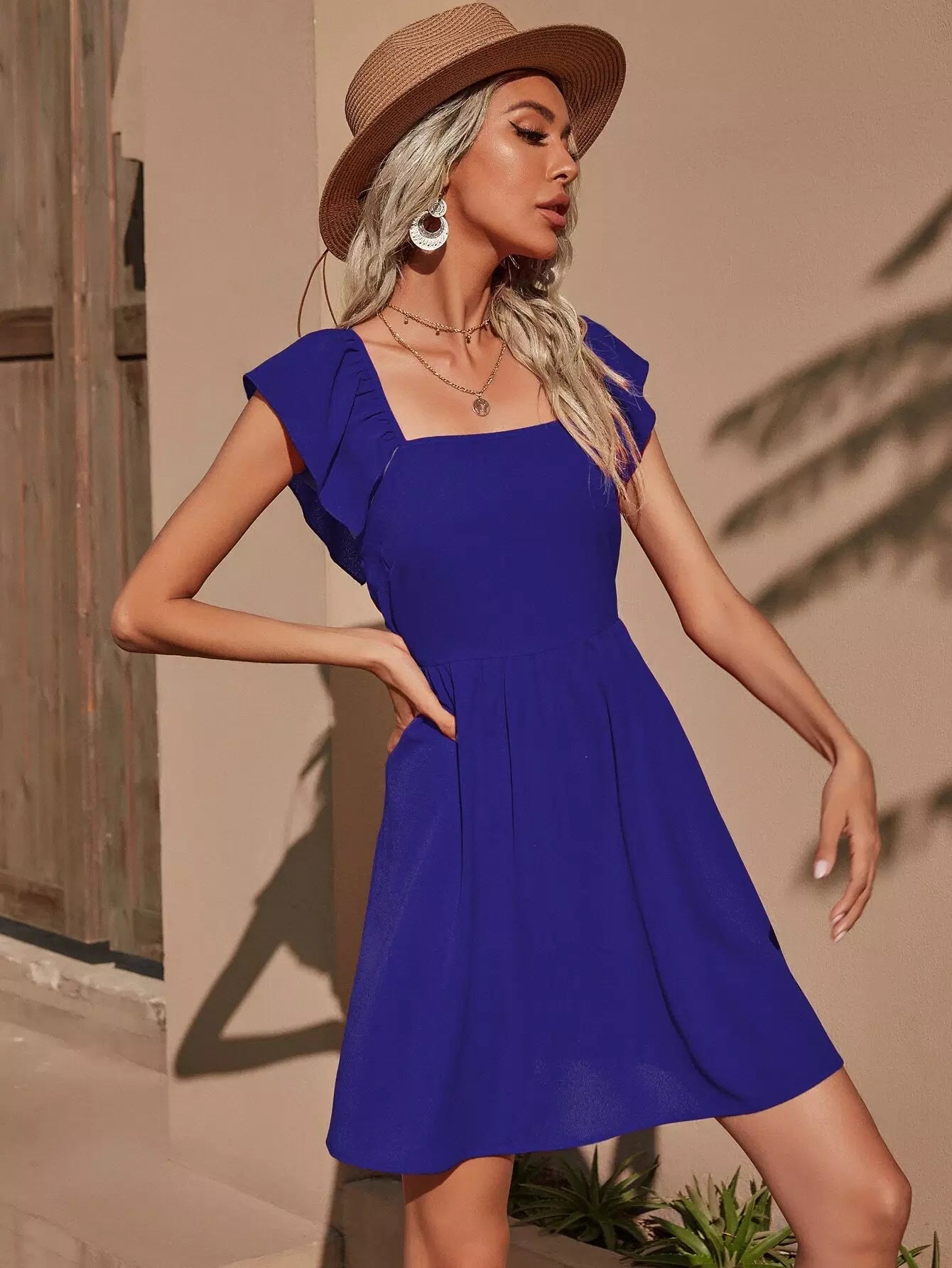 فستان بدون أكمام بأكمام مكشكشة بدون أكمام على شكل حرف A