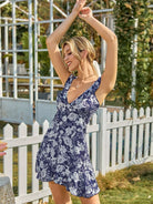 للنساء - فستان بطبعة زهور وأطراف مكشكشة بالكامل