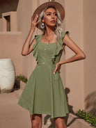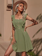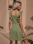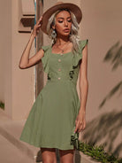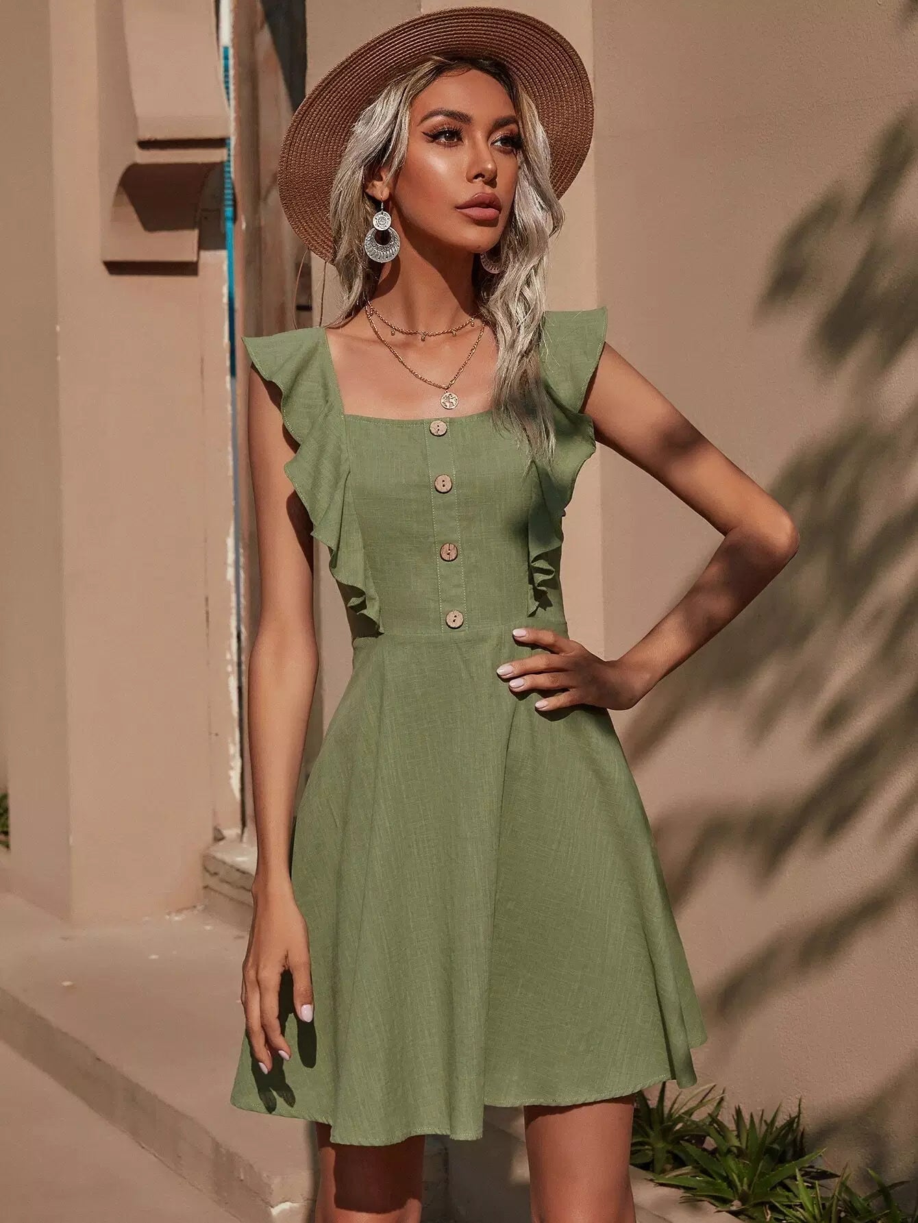 فستان بحواف كشكش بأزرار أمامية مكشكشة