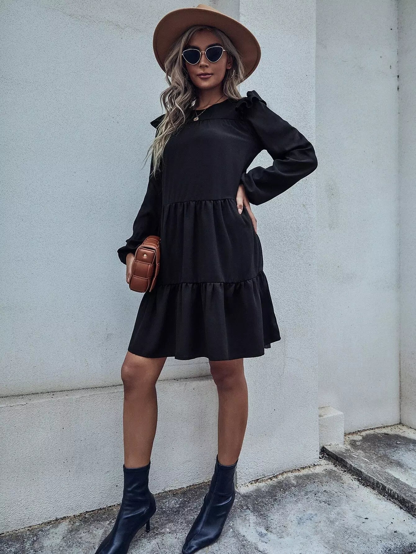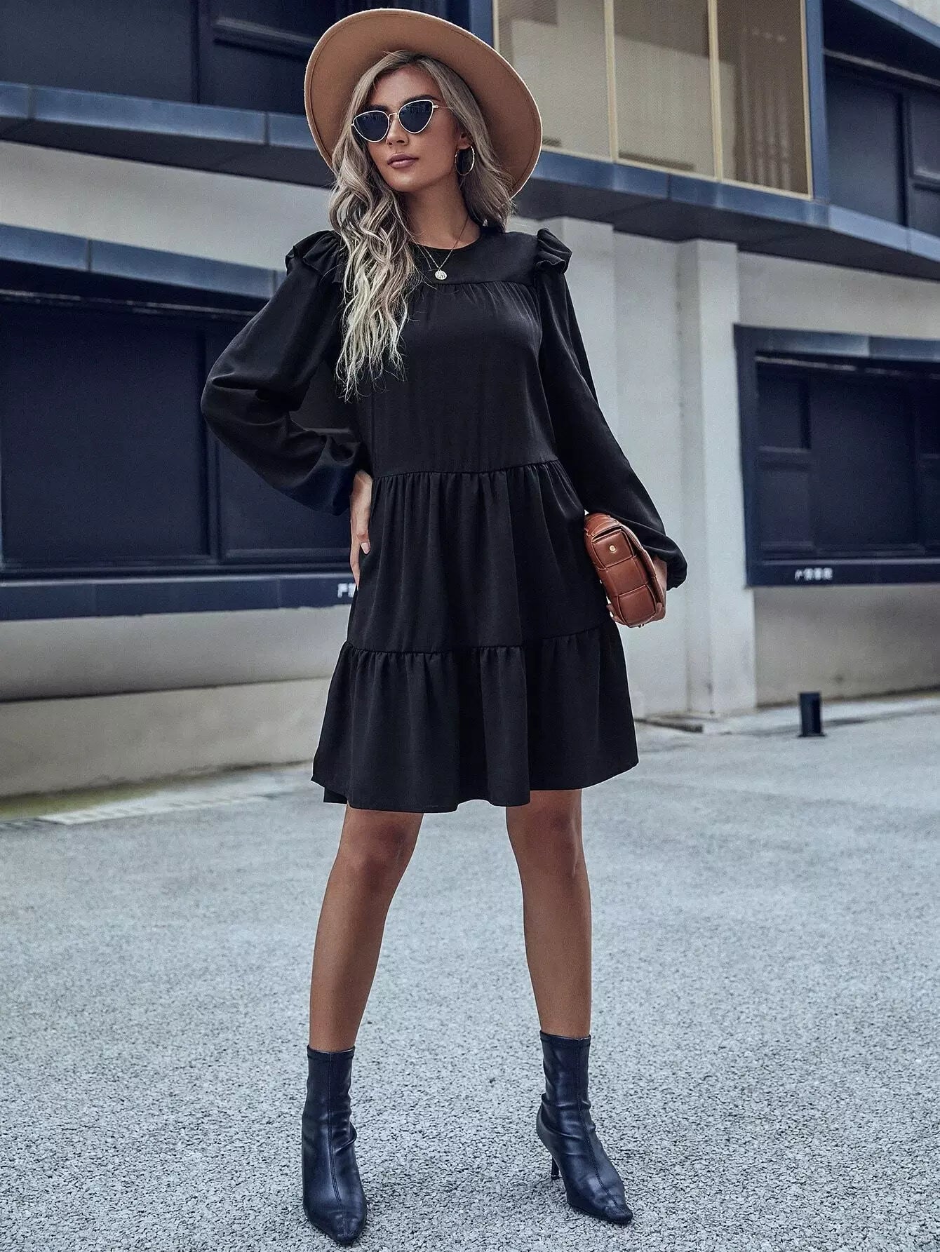 فستان بأكمام مكشكشة بأكمام كشكش بأكمام فانوسية