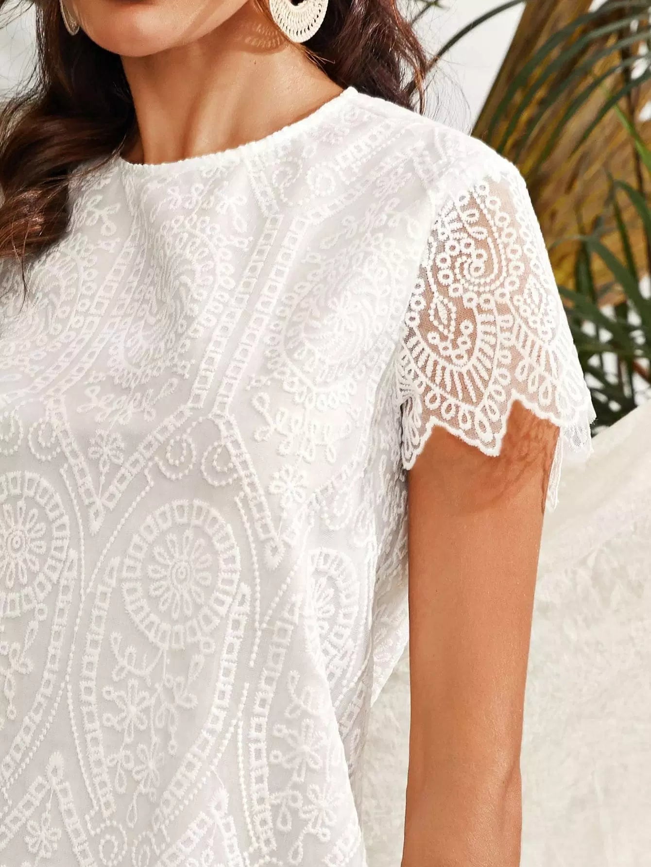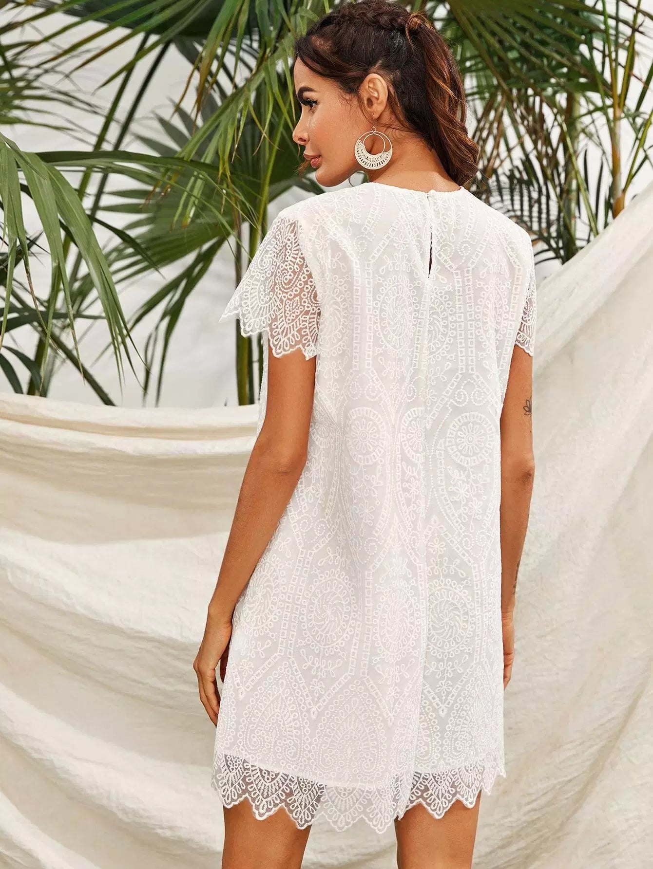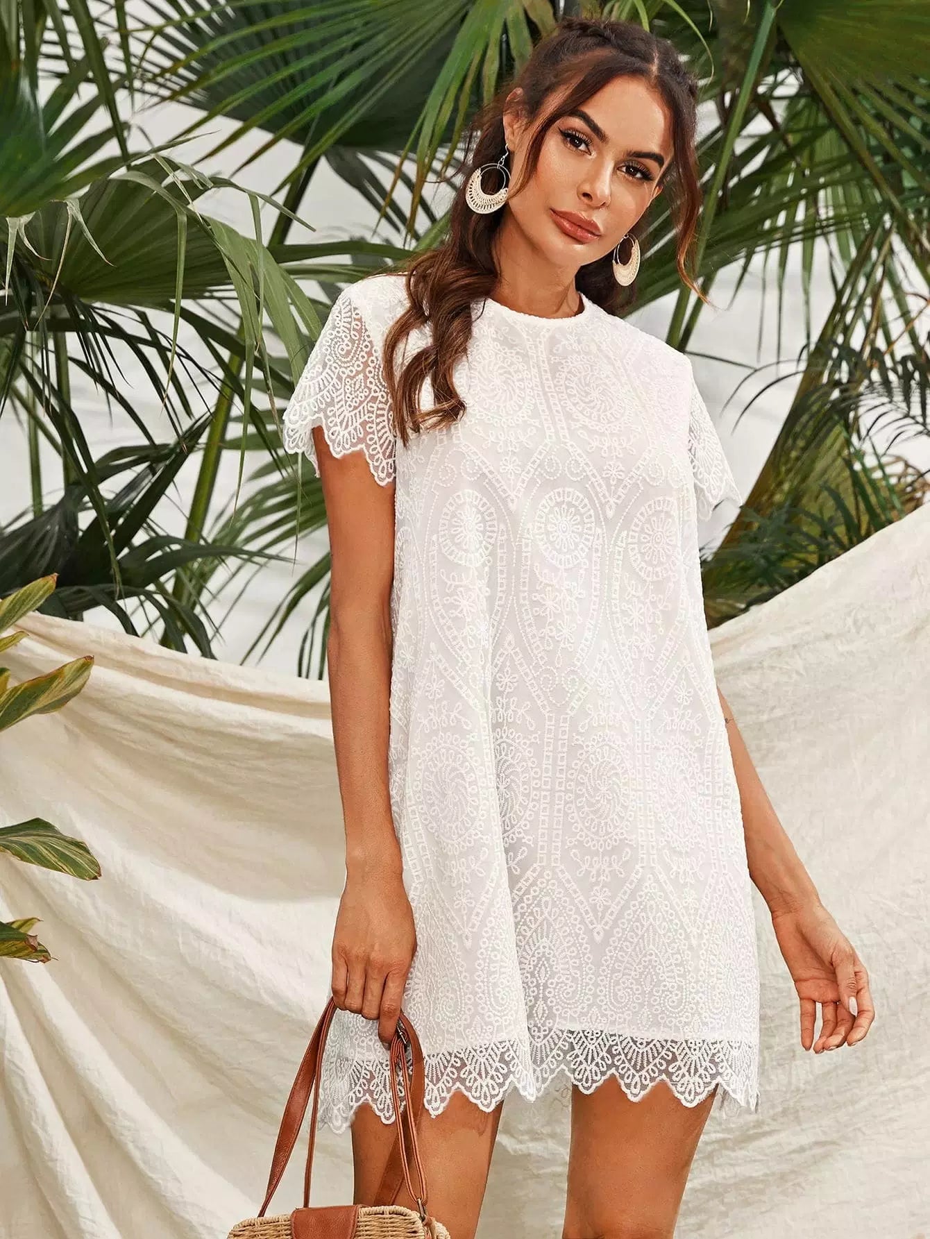 فستان من الدانتيل المخرّم بحواف من الدانتيل المخرّم