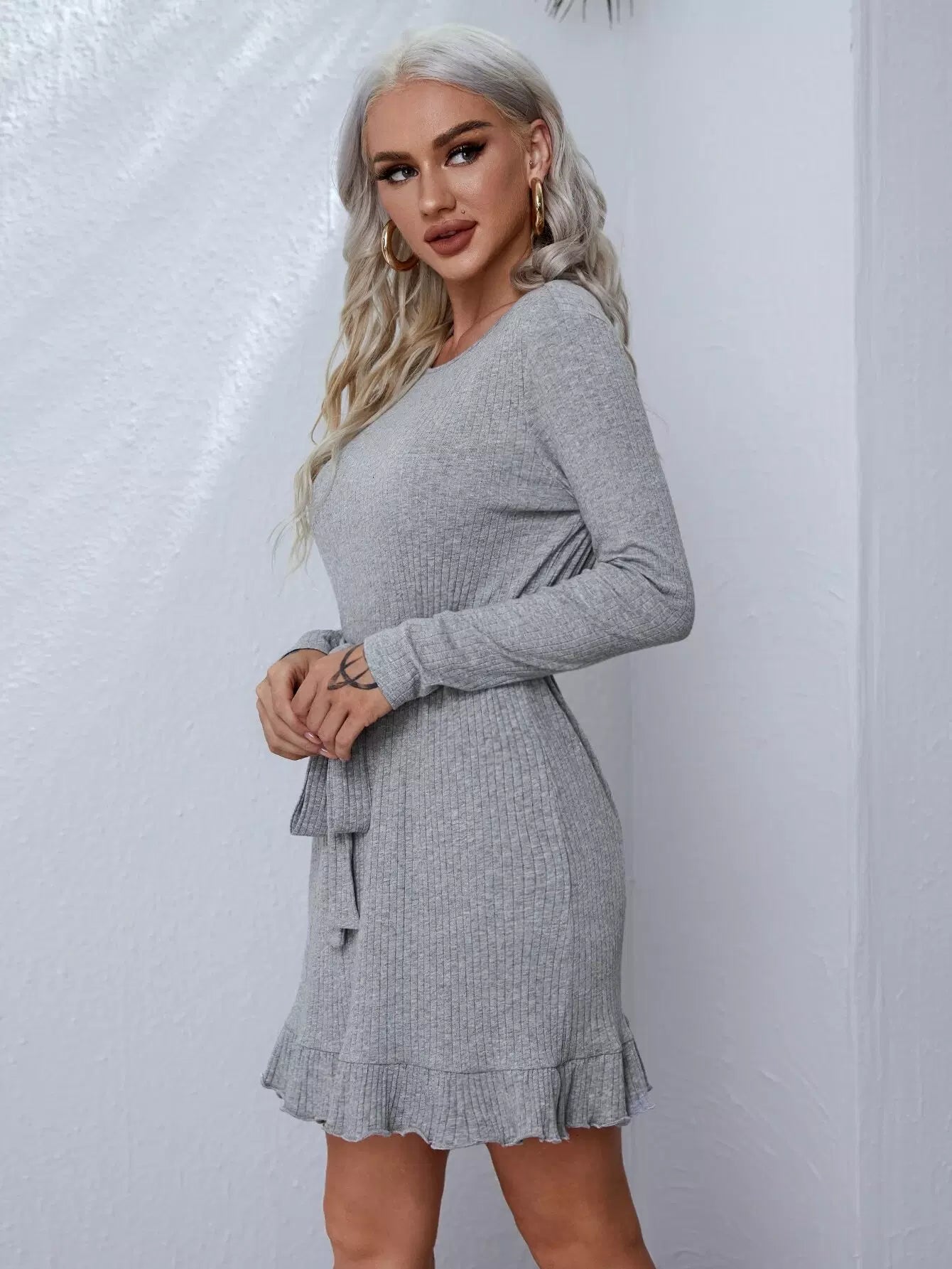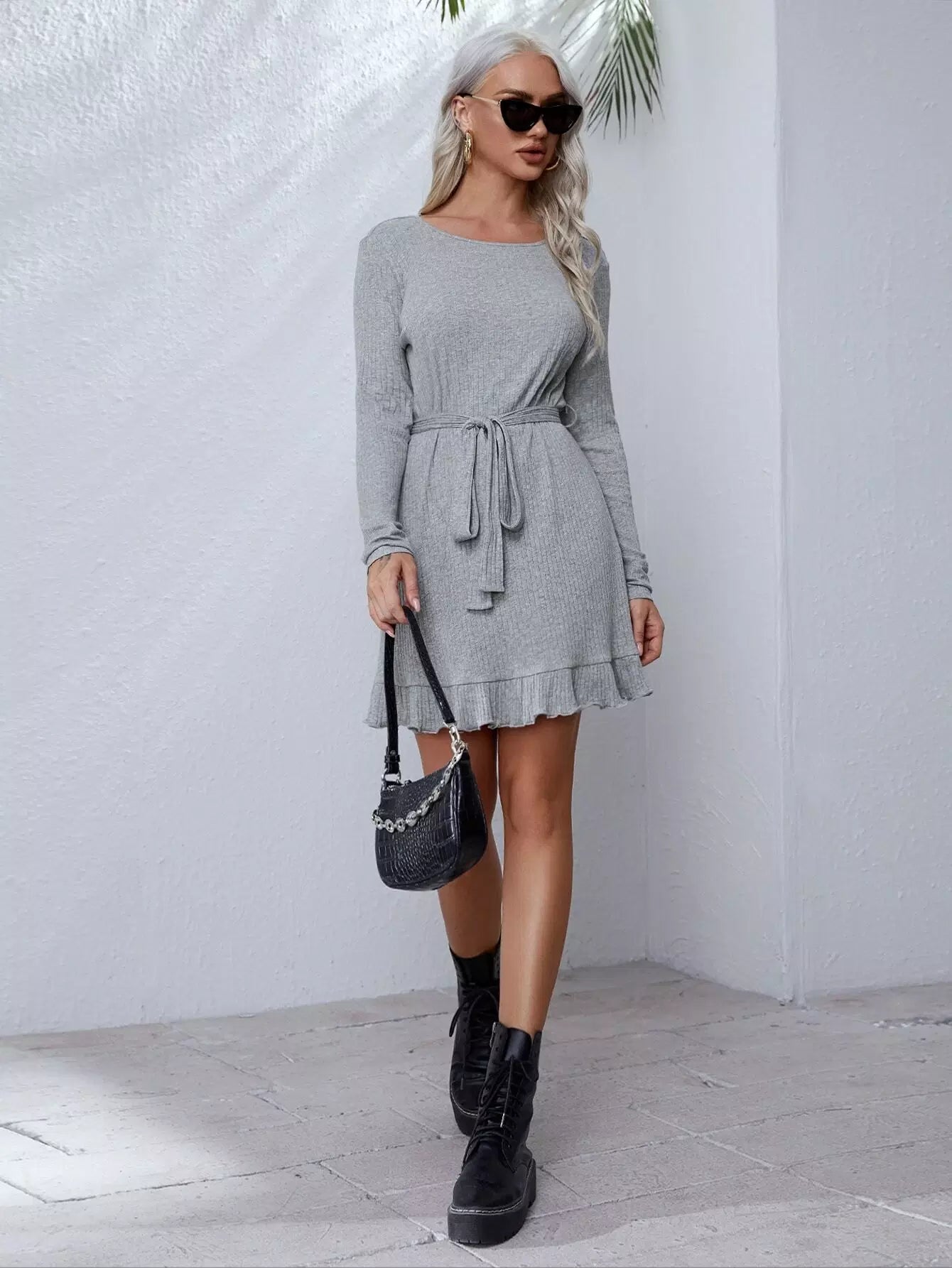 فستان مضلع بحاشية مكشكشة بدون حزام