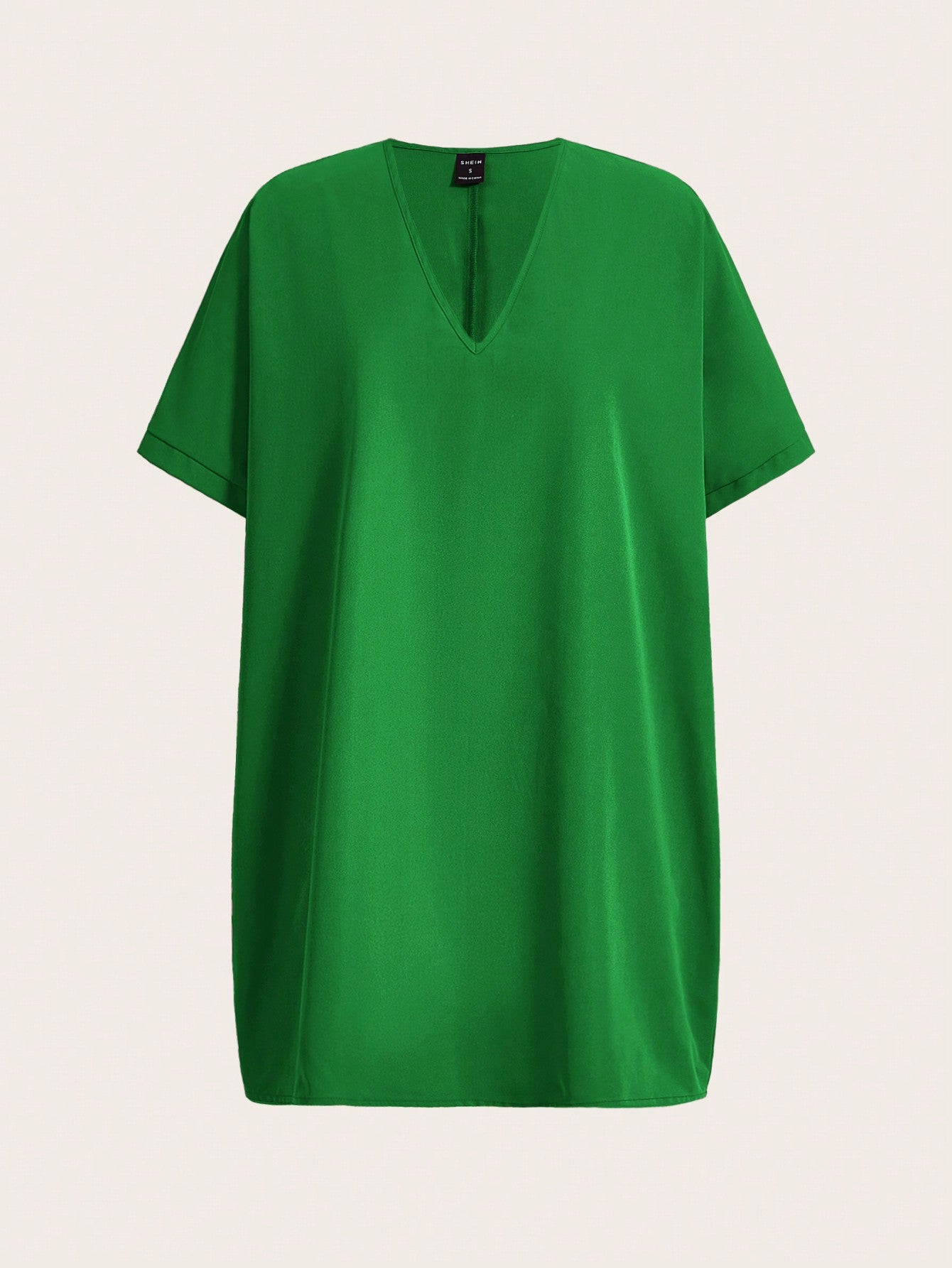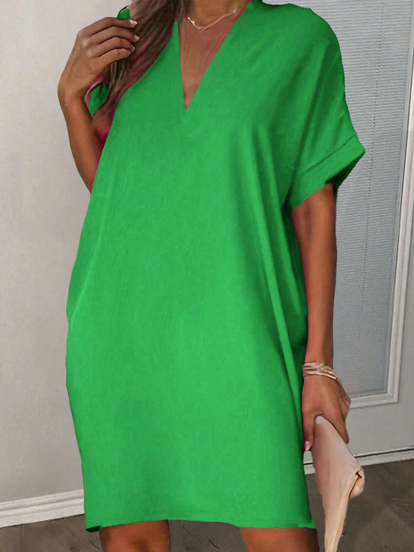 فستان نسائي وردي اللون من سلايديفا كاجوال فضفاض بأكمام قصيرة ورقبة على شكل حرف V
