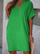 Slaydiva Casual Loose Short Sleeve V-Neck Pink Women's Dress