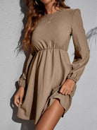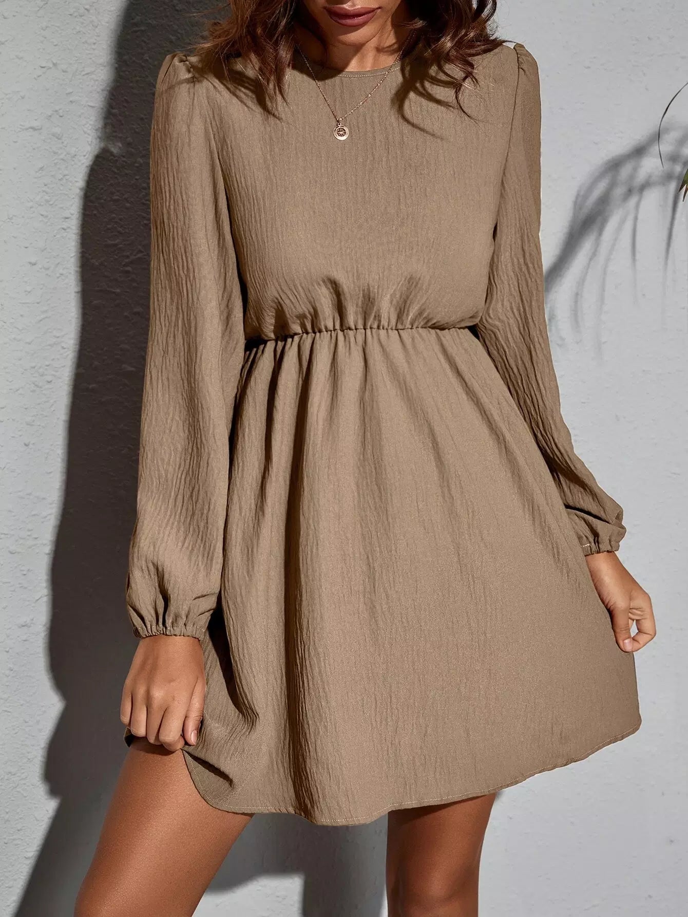 فستان سادة بأكمام واسعة وحاشية واسعة