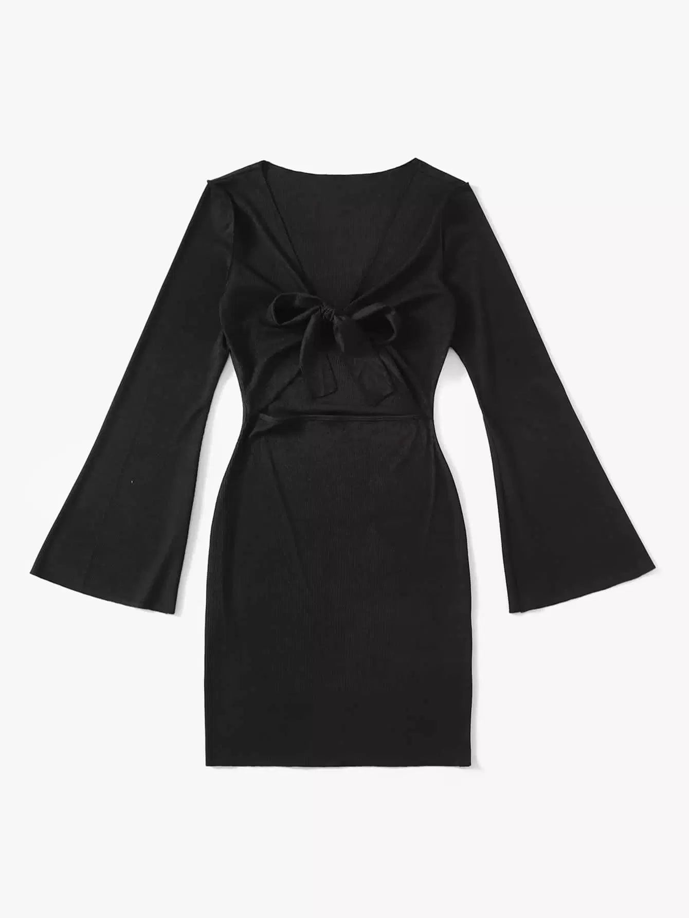 فستان سادة بفتحة من الأمام بربطة عنق سادة