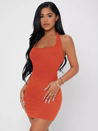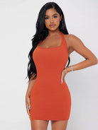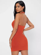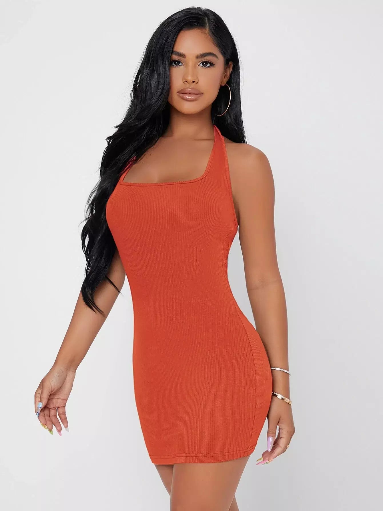 فستان ضيق بدون ظهر وفتحة رقبة على شكل حرف V