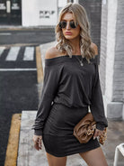 فستان سادة مكشوف الكتفين سادة بلوسون