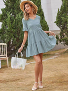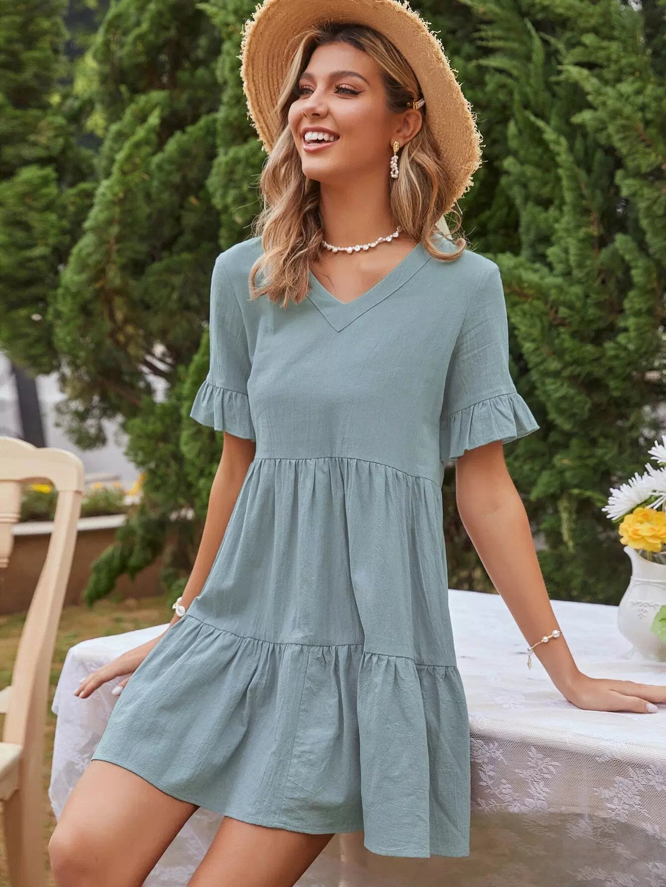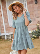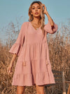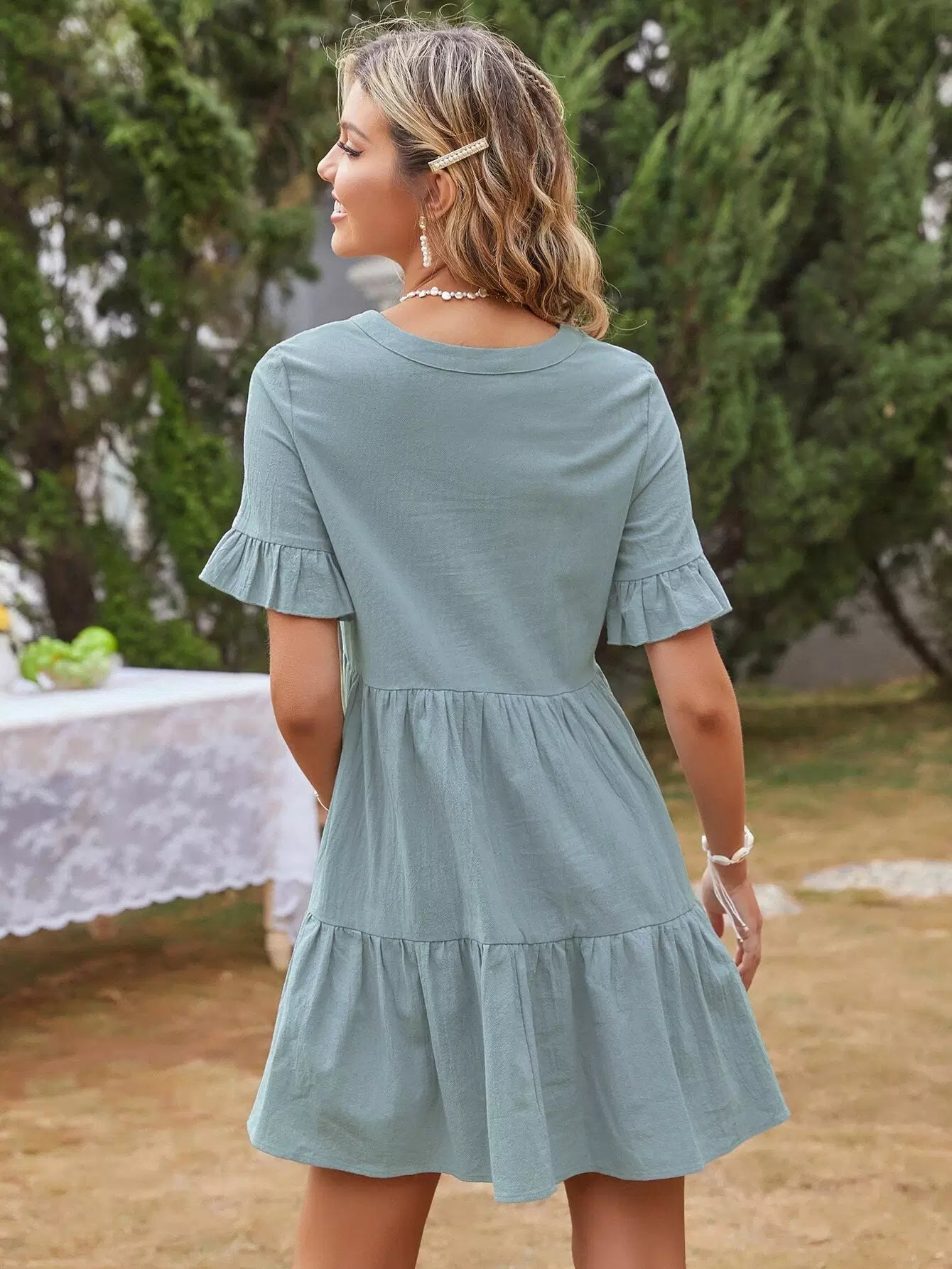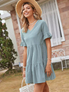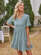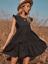 فستان سموك بحواف مكشكشة سادة