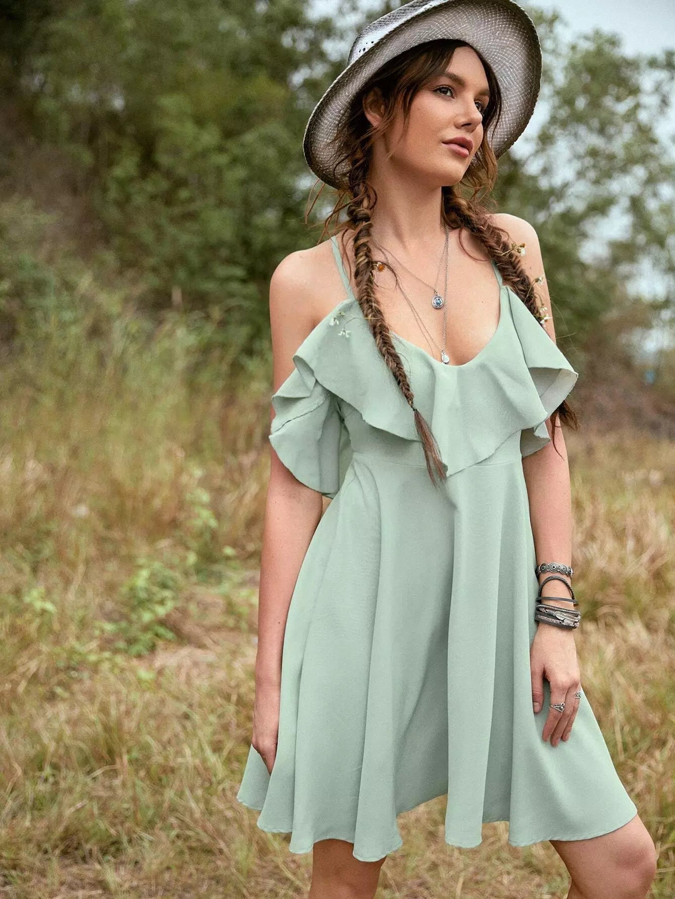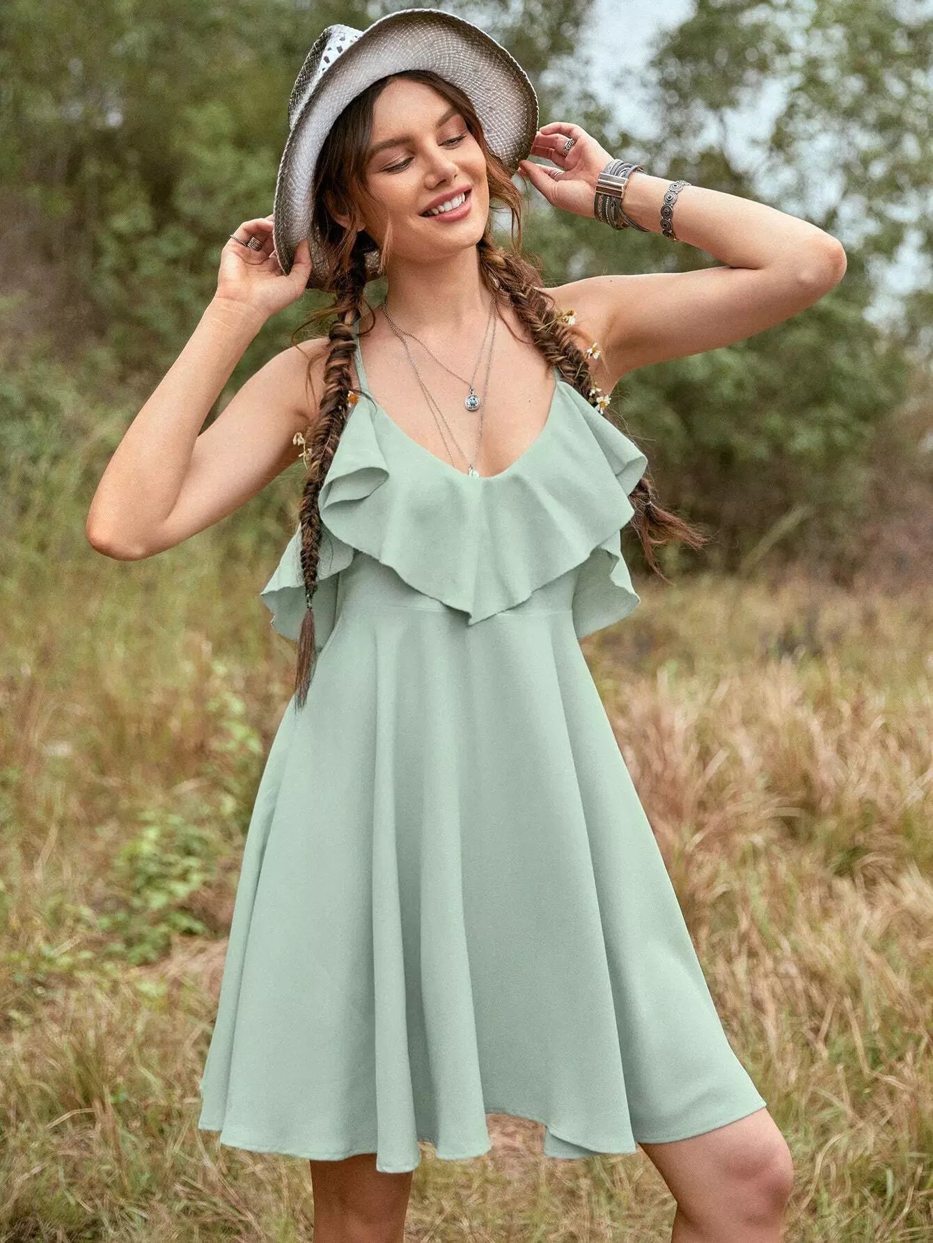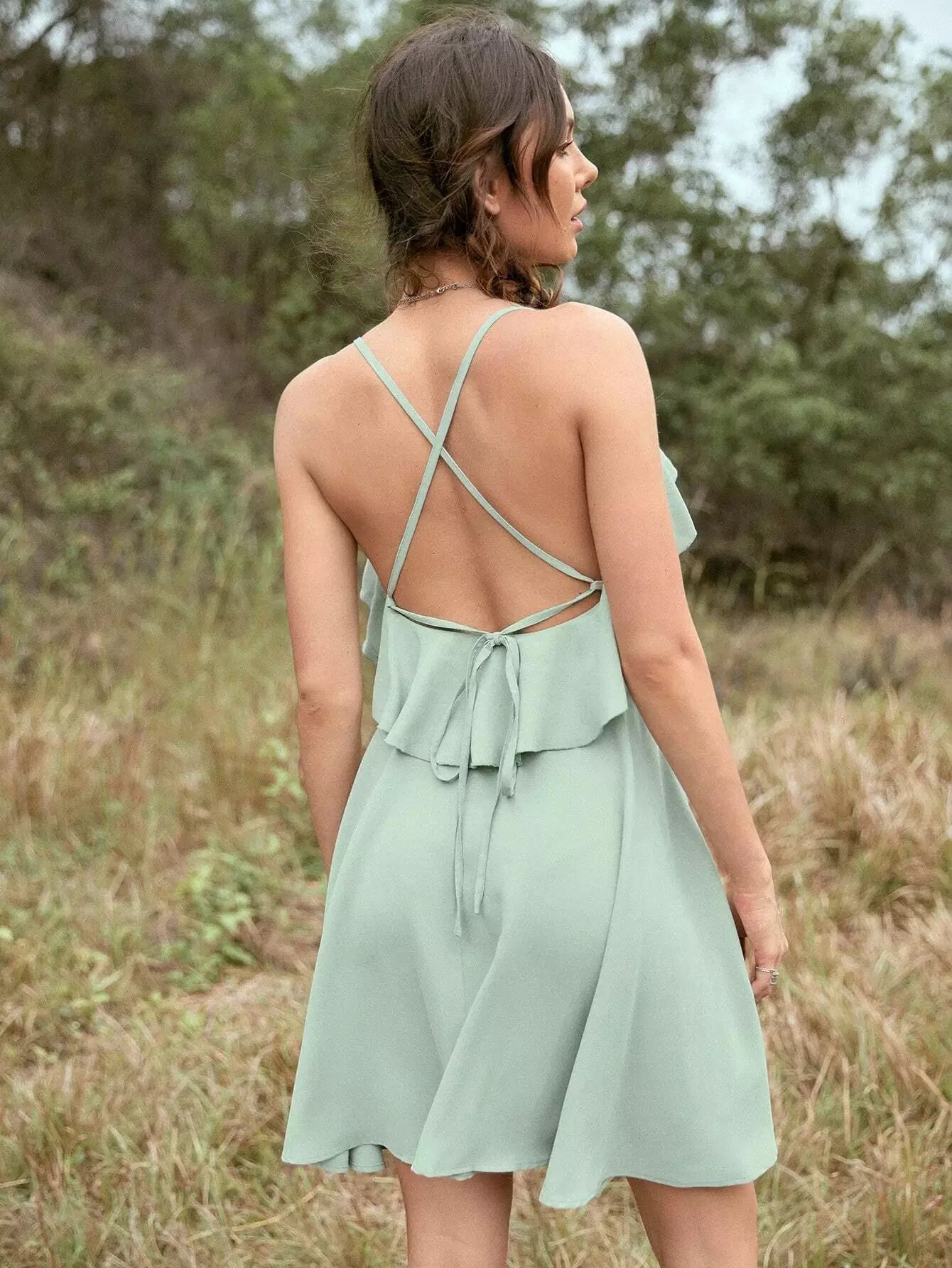 فستان كشكش سادة بحواف كشكش متقاطعة على الظهر