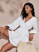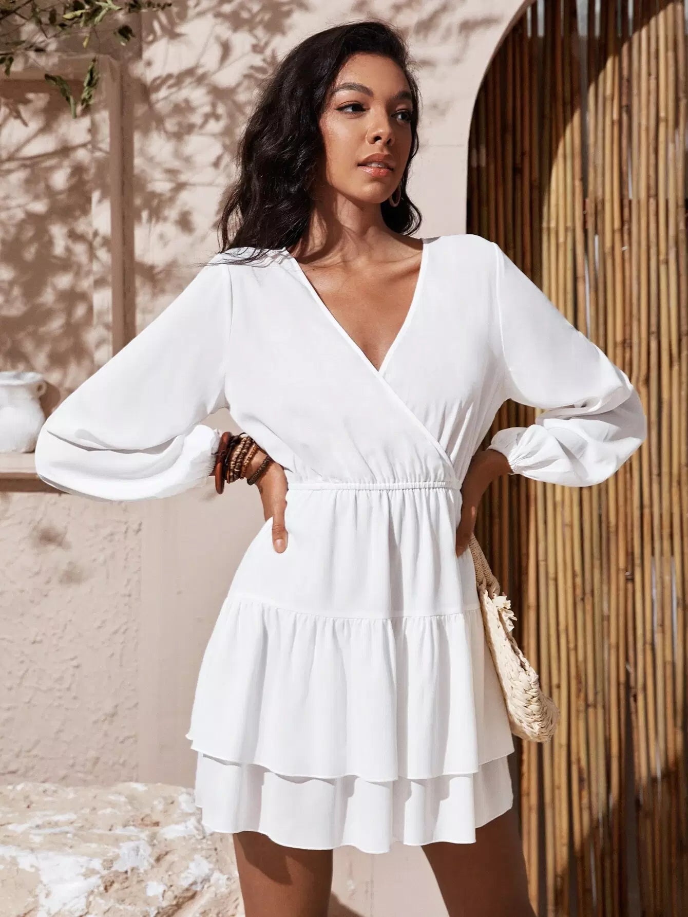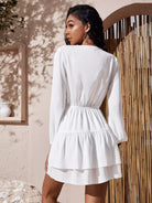 للنساء - فستان بحاشية مكشكشة أمامية سادة