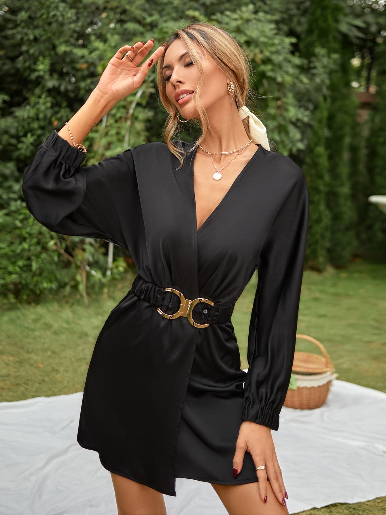 فستان ملفوف من الأمام من Surplice سادة بدون حزام