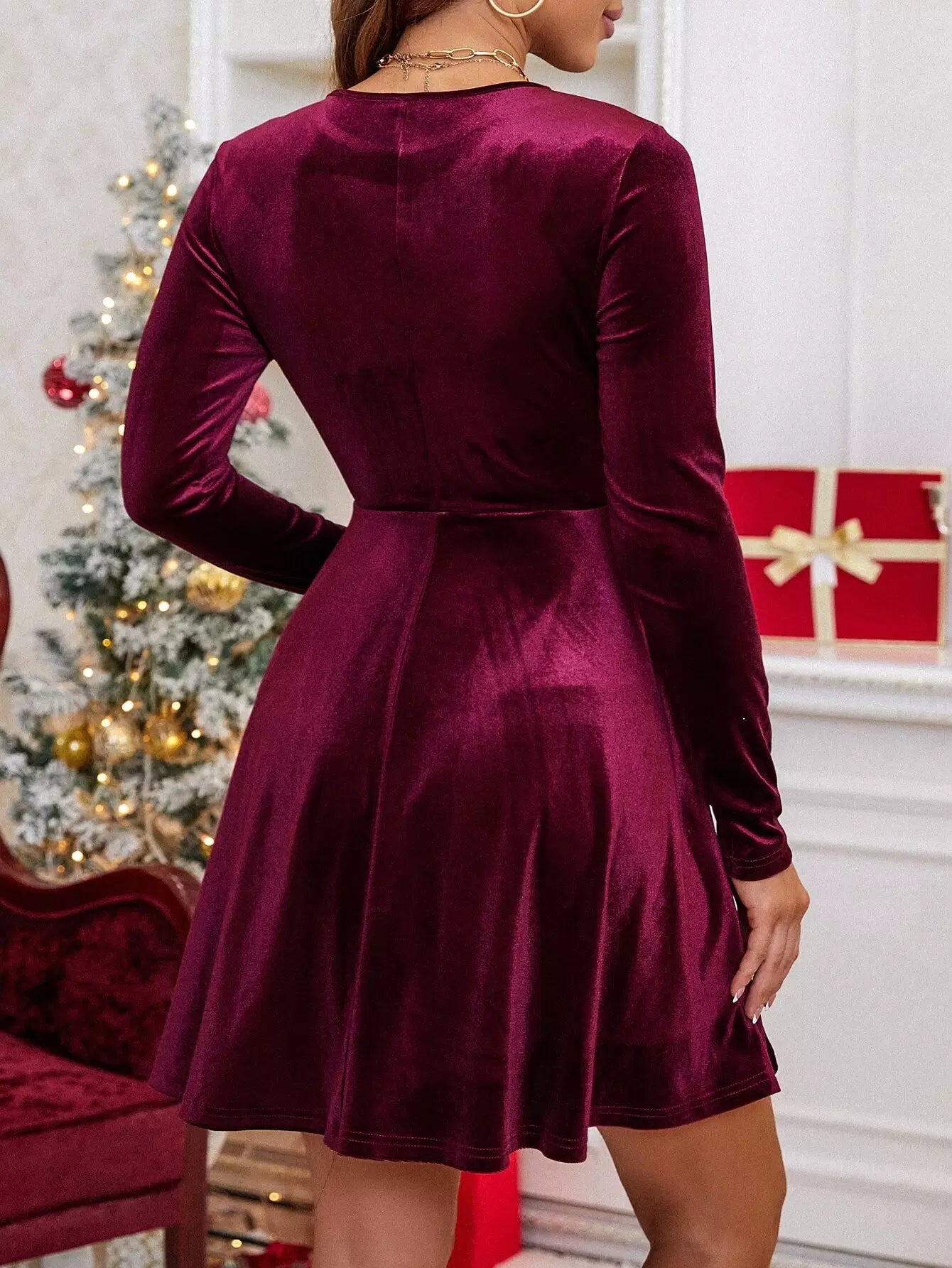للنساء - فستان مخملي سادة على شكل حرف A بدون حزام
