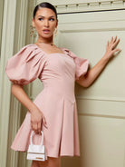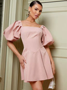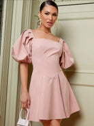 فستان ذو رقبة مربعة وأكمام منفوخة