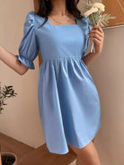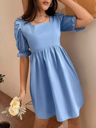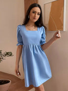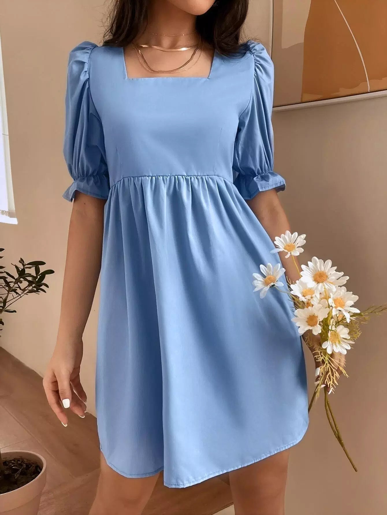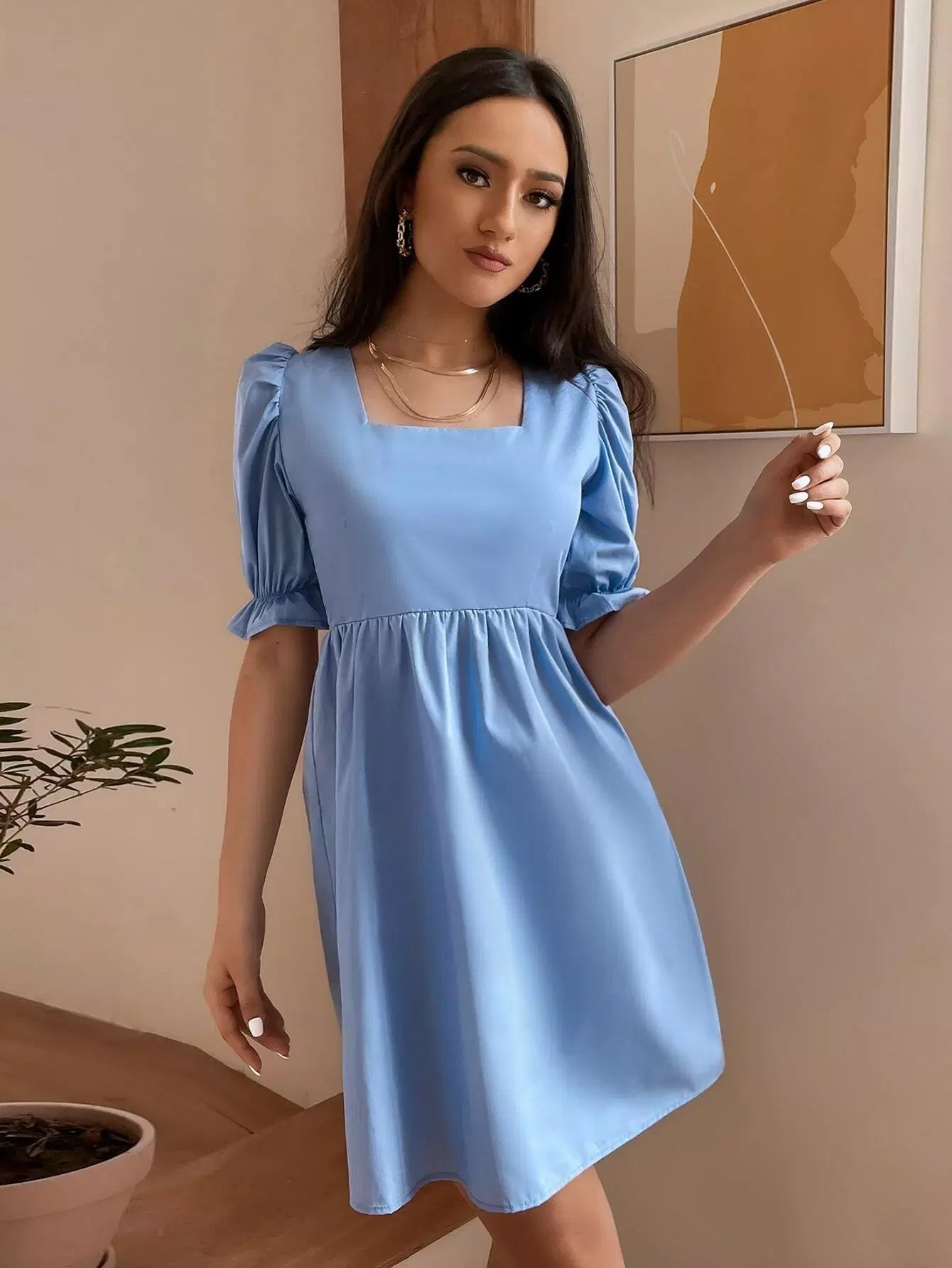 فستان بياقة مربعة بأكمام منفوخة بأكمام مربعة وربطة عنق على شكل حرف A