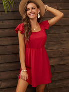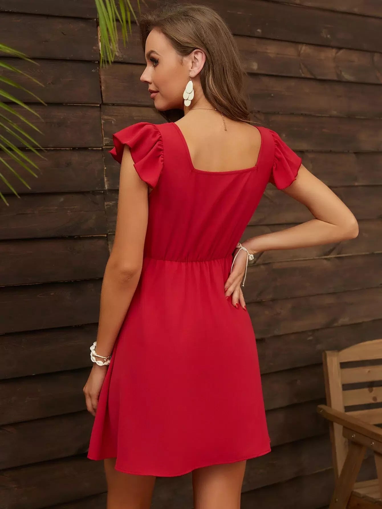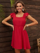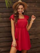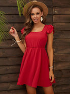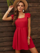 فستان برقبة مربعة بفتحة ذراع مكشكشة مربعة