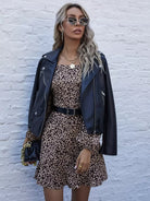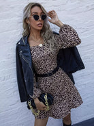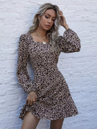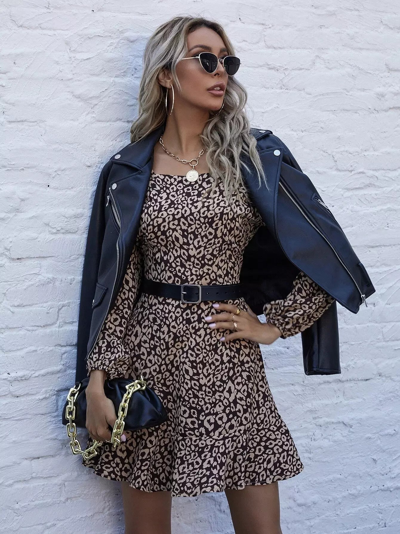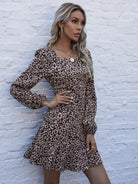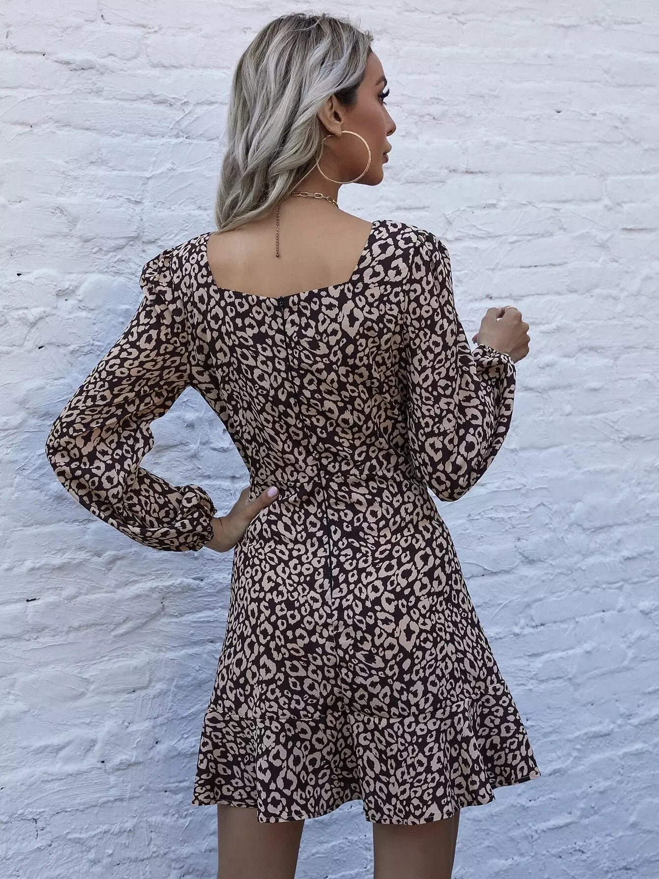فستان بطبعة كشكش مربع الرقبة بحافة مربعة من الكشكش على كامل الحافة