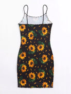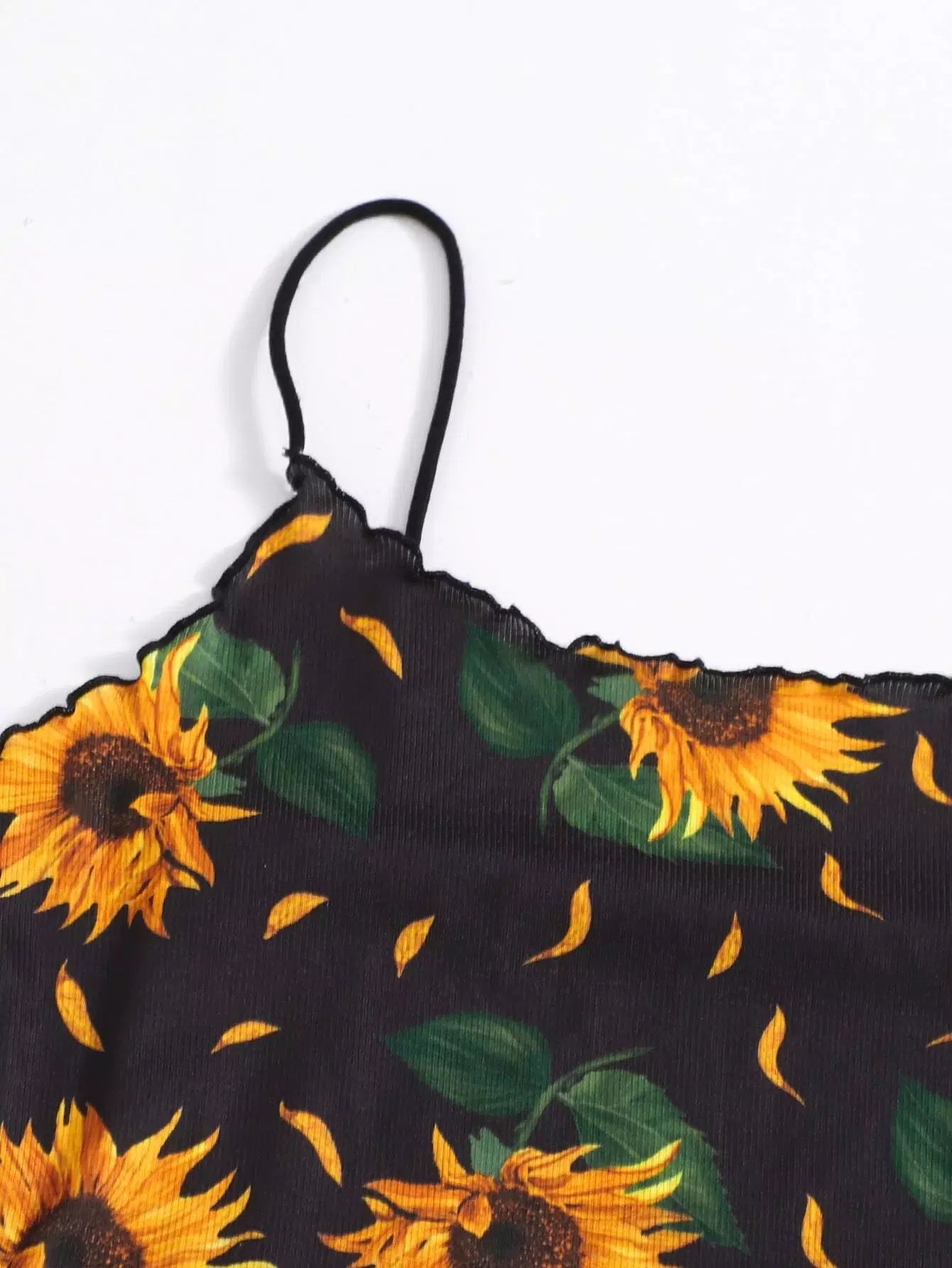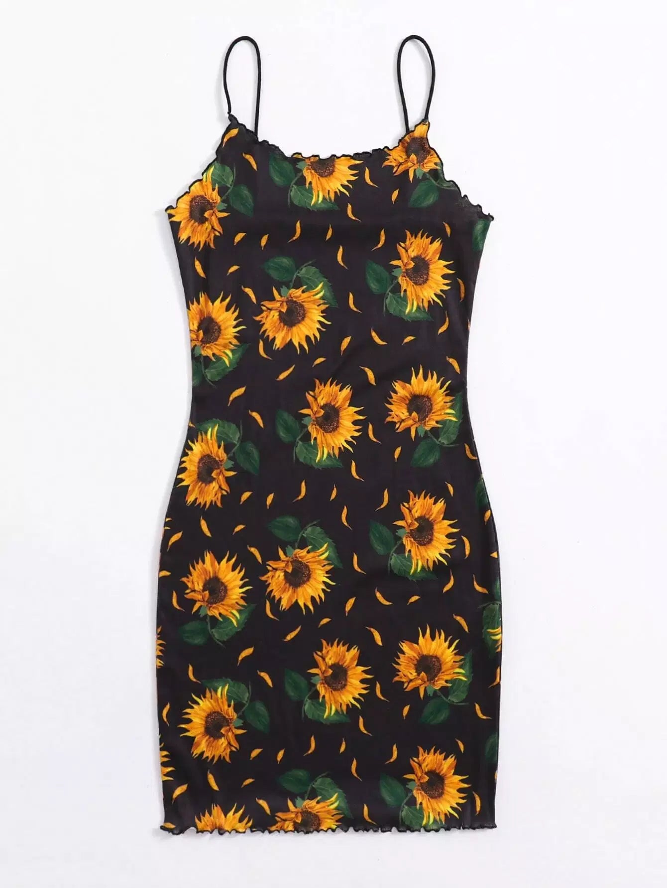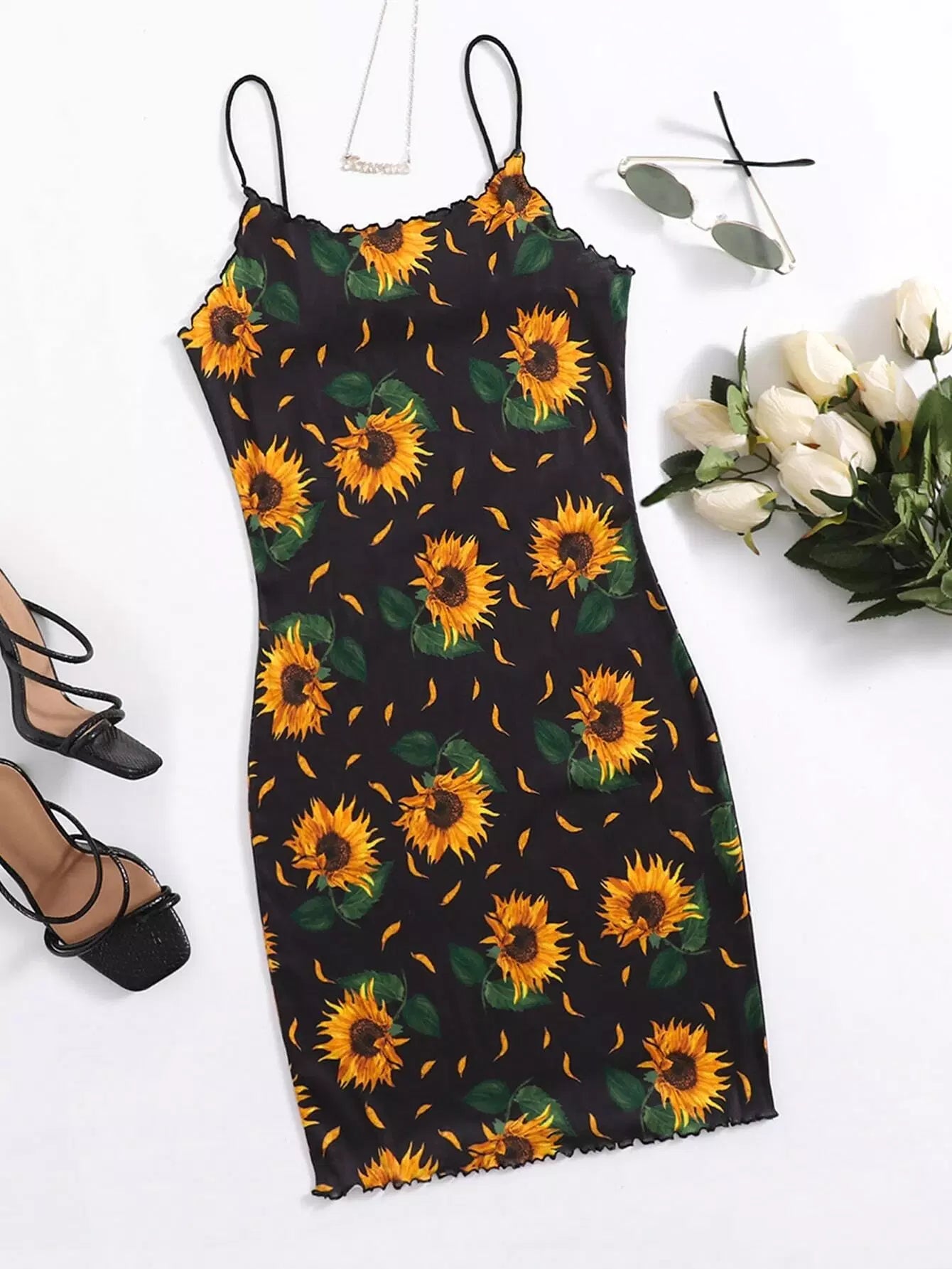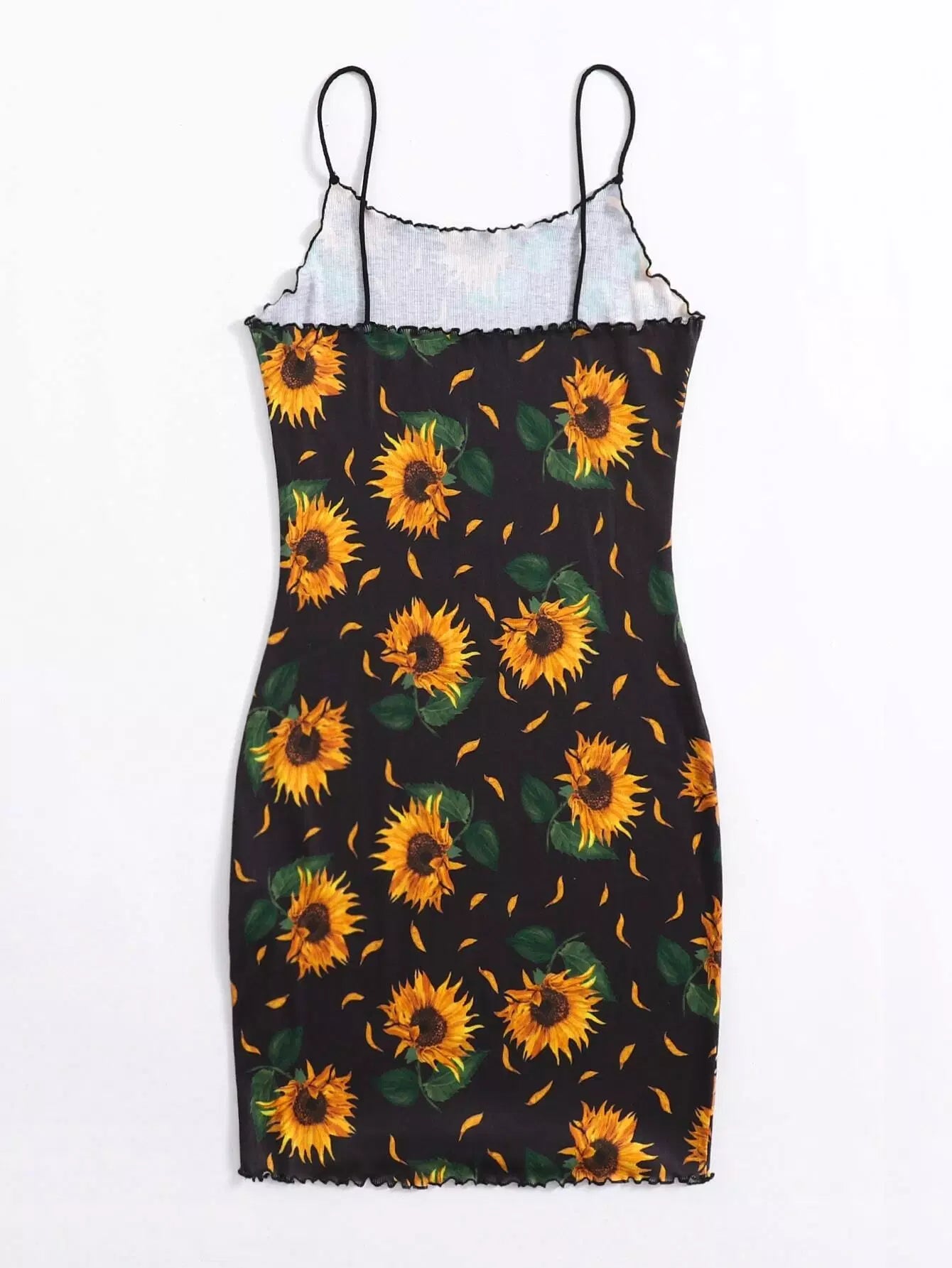 فستان كُمي بودي بودي بيجامة مطبوع بنقشة دوار الشمس بحواف من الخس