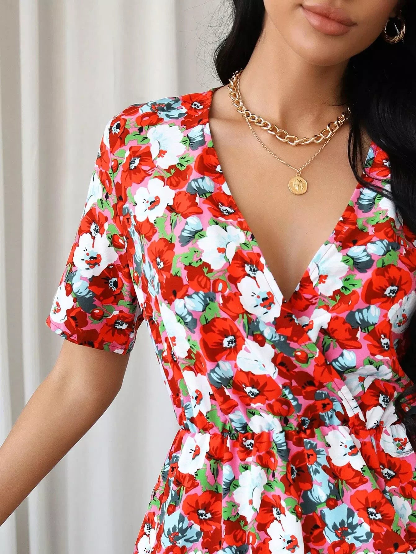 فستان زهري برقبة حمّالة برقبة حمّالة
