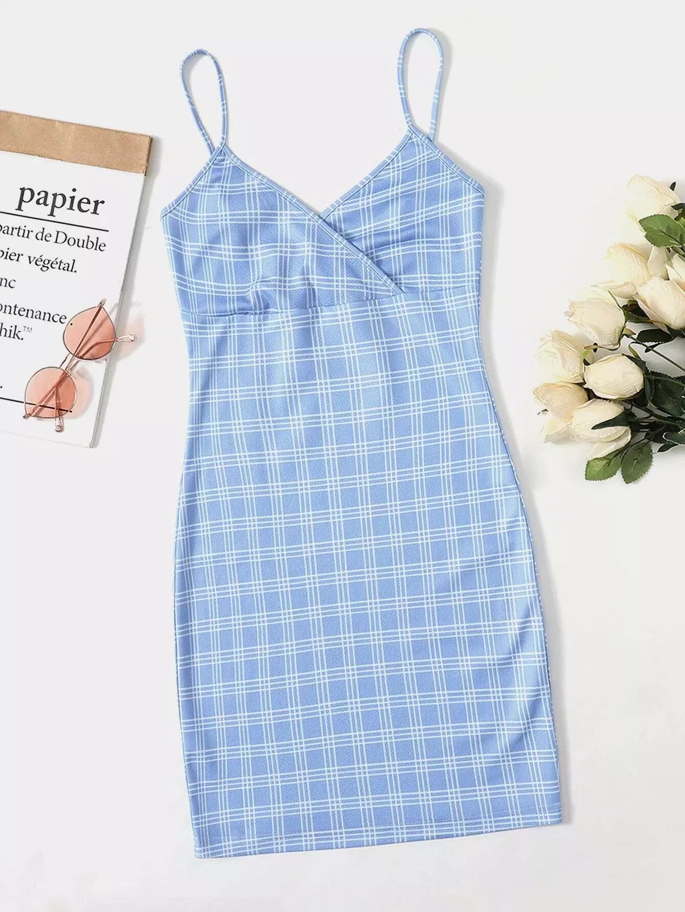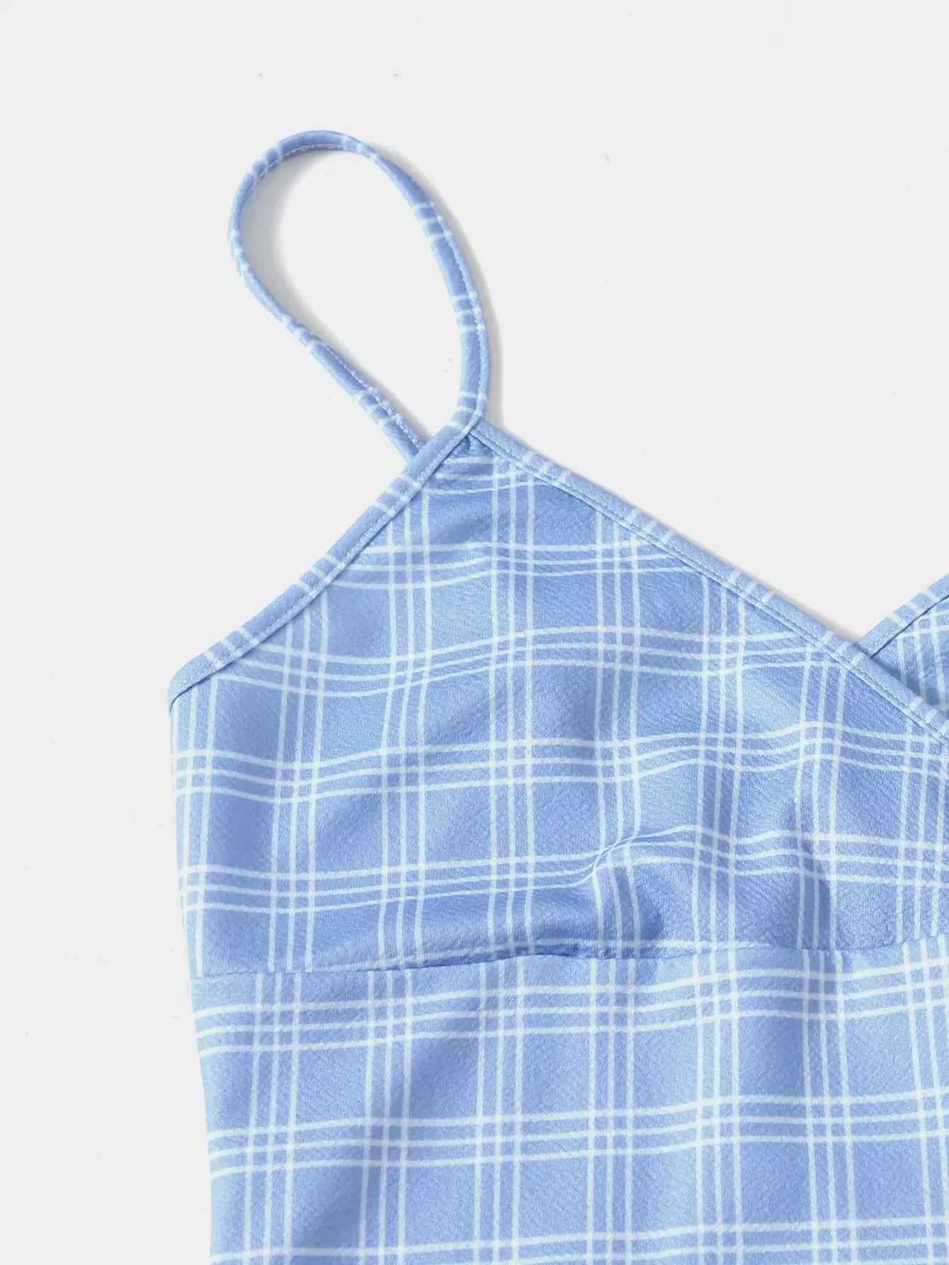فستان منقوش برقبة منقوشة على شكل حمالة