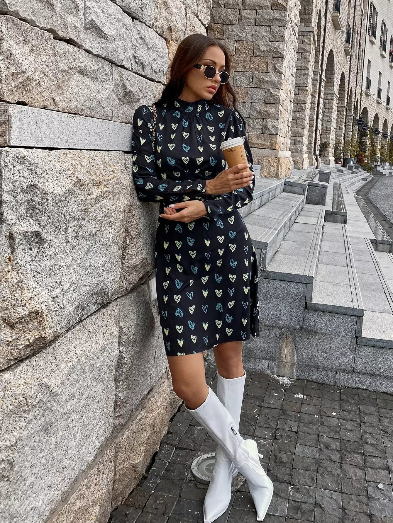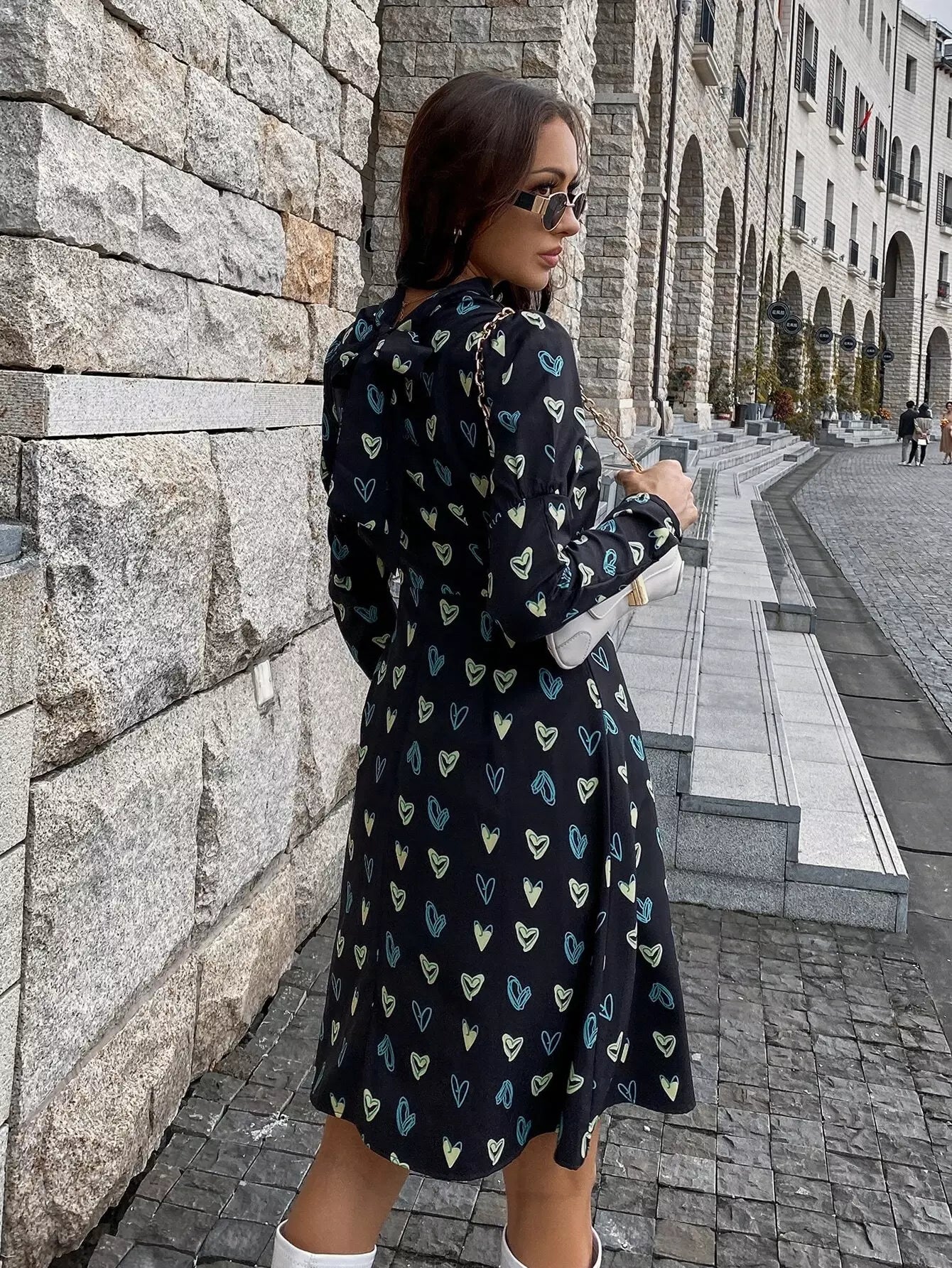 فستان على شكل قلب مطبوع على شكل قلب بربطة على الظهر