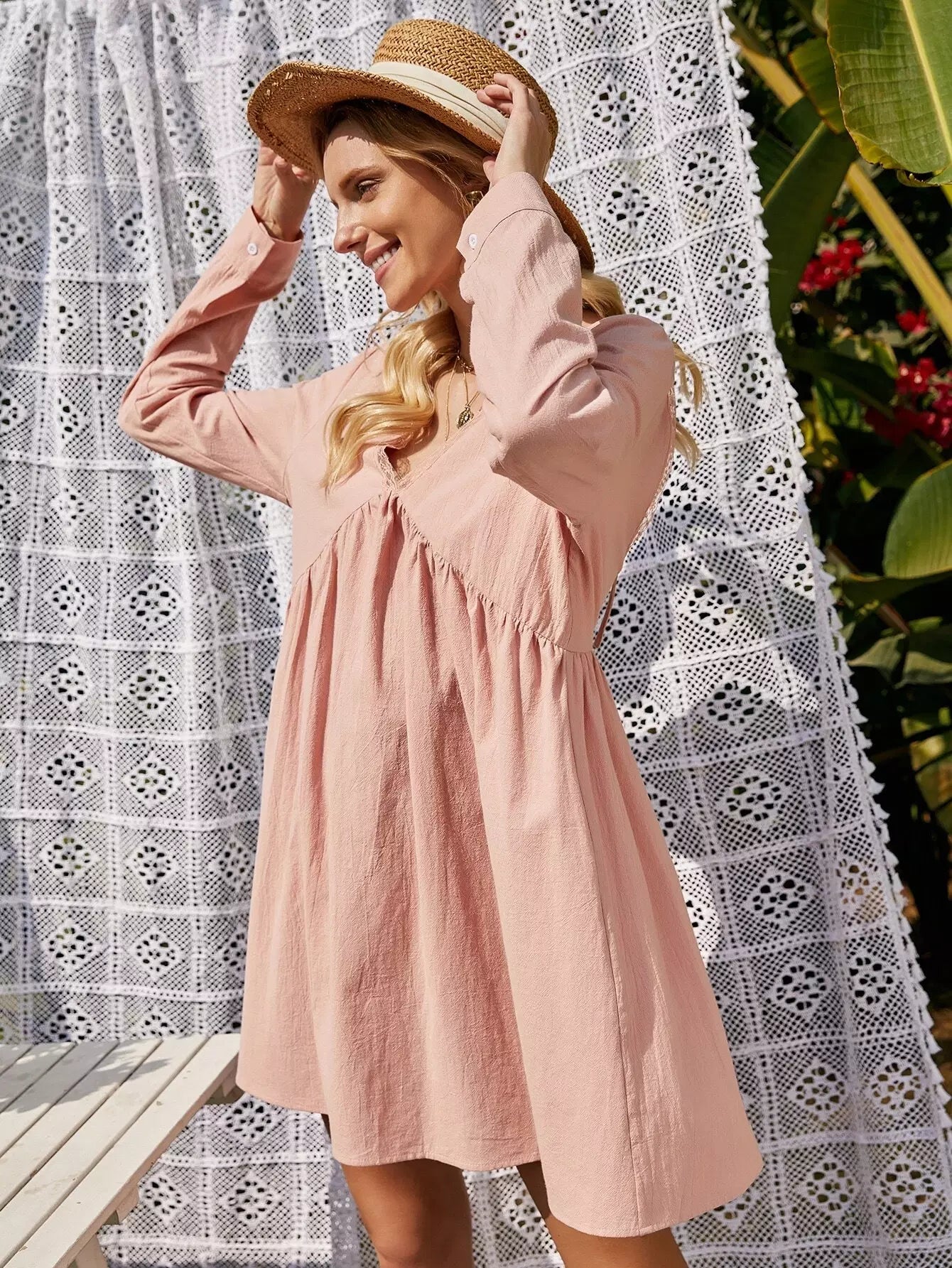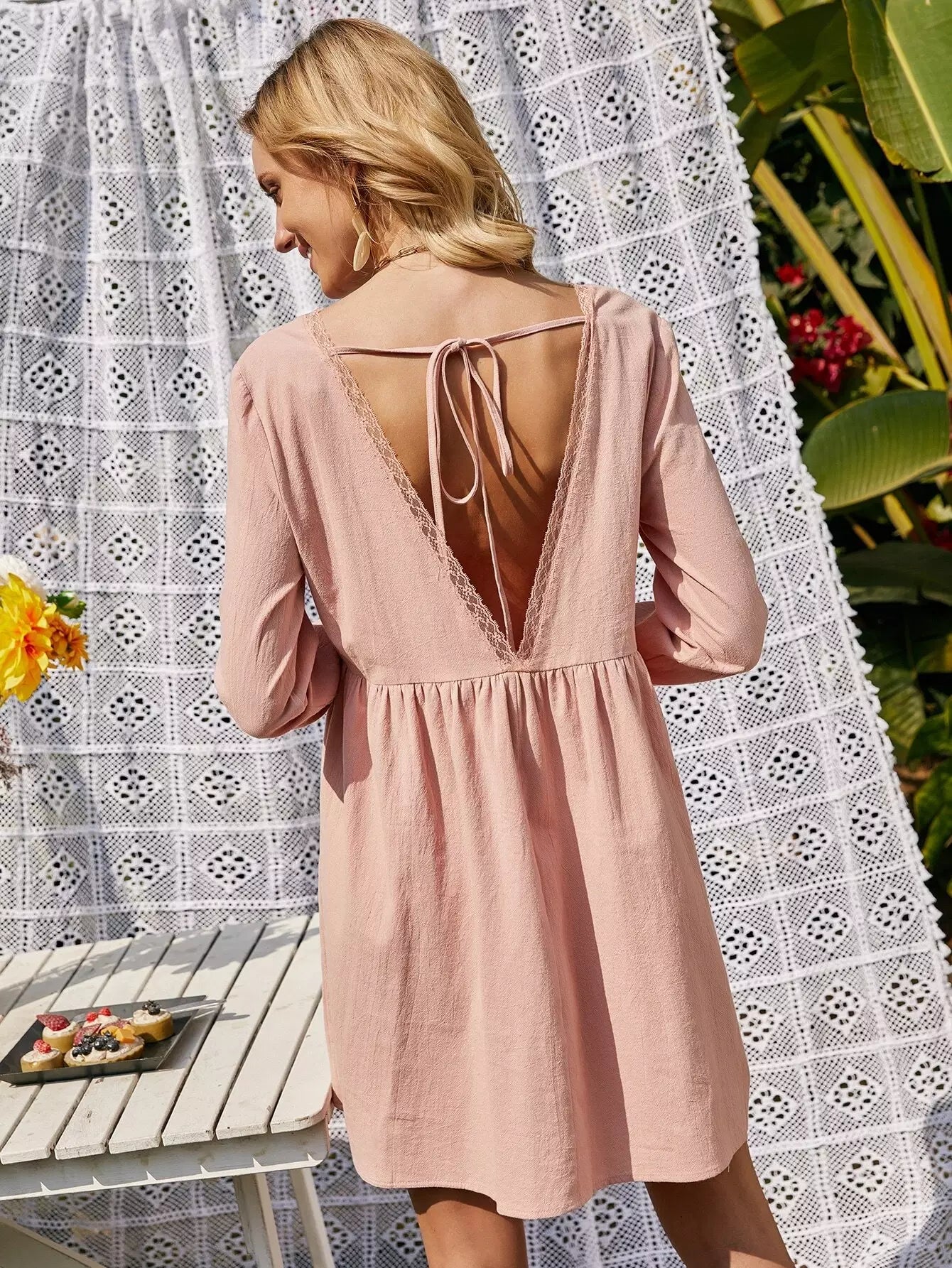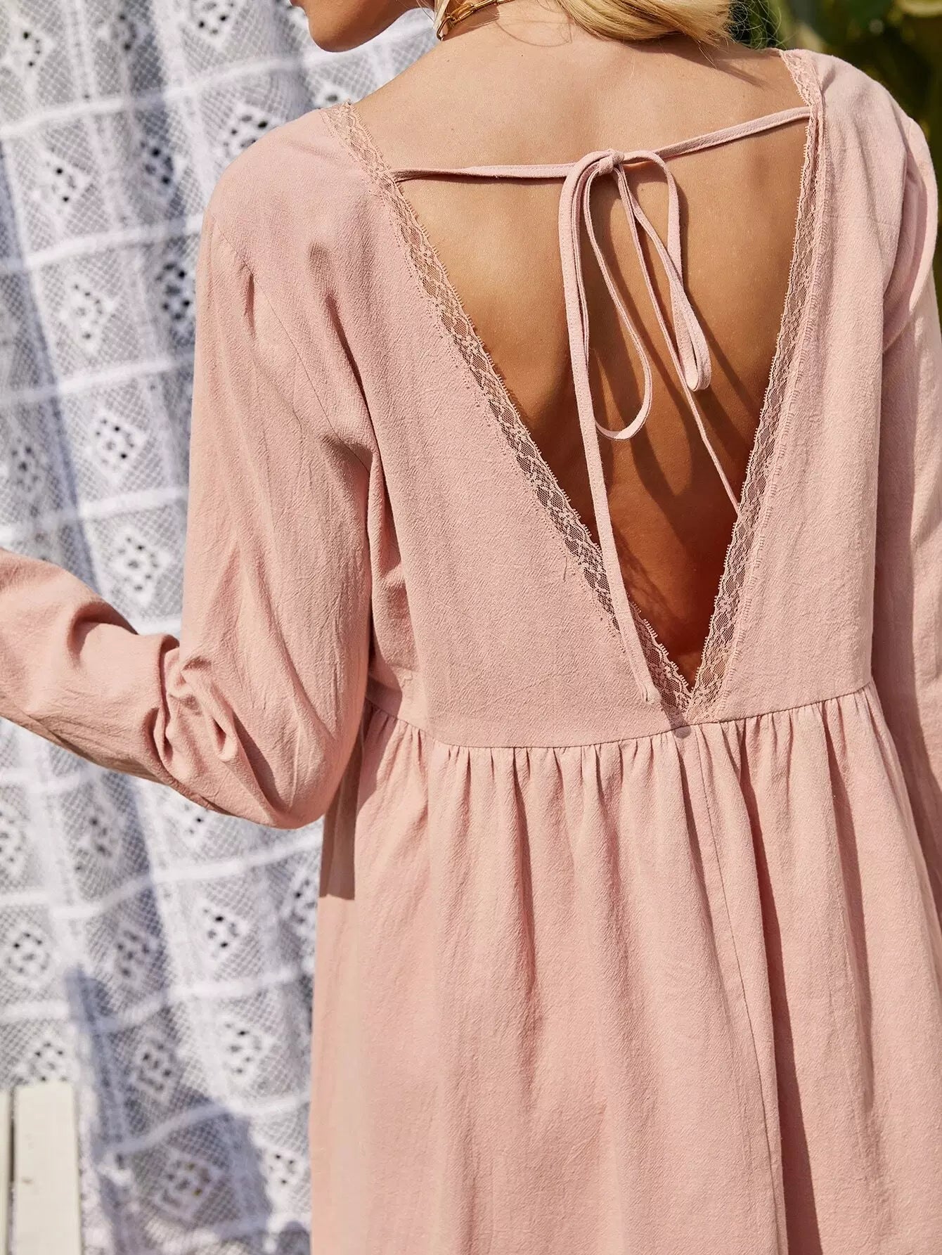 فستان سموك مزين برباط من الدانتيل مزين برباط على الظهر