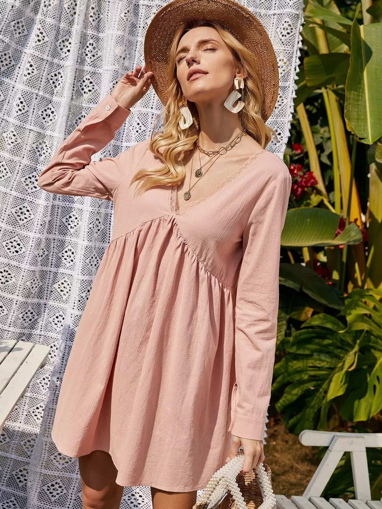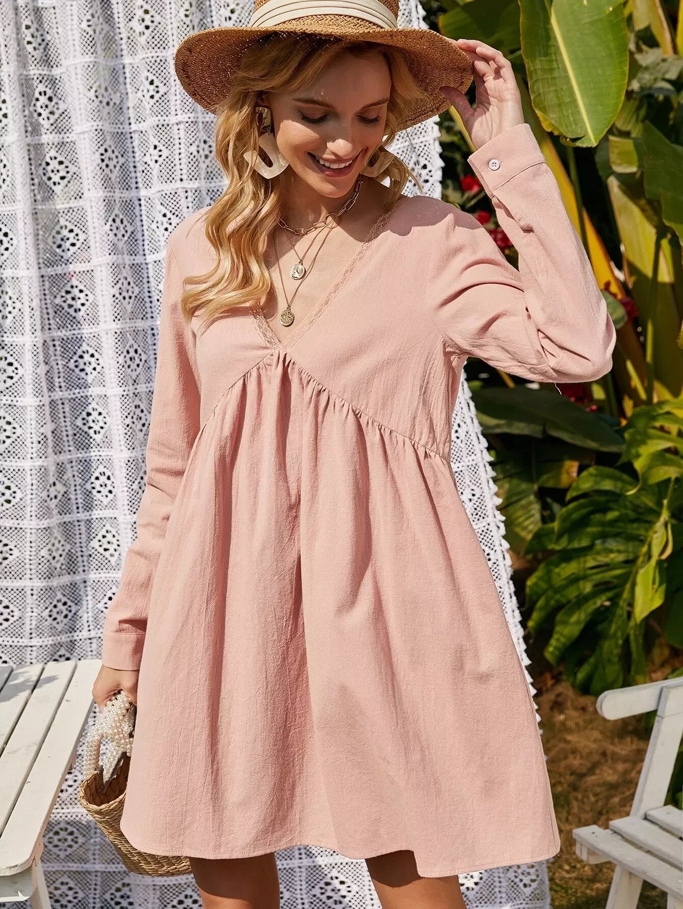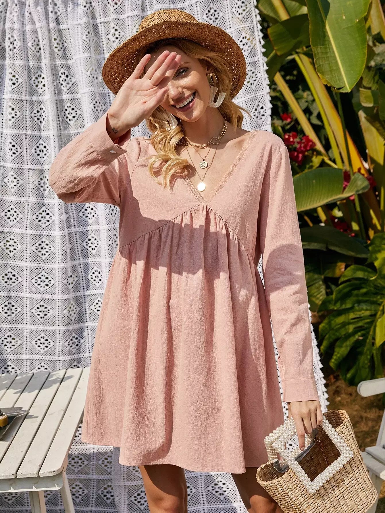 فستان سموك مزين برباط من الدانتيل مزين برباط على الظهر