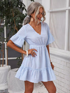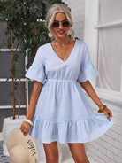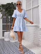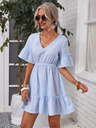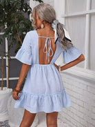 فستان مخطط بأكمام مكشكشة وظهر مفتوح
