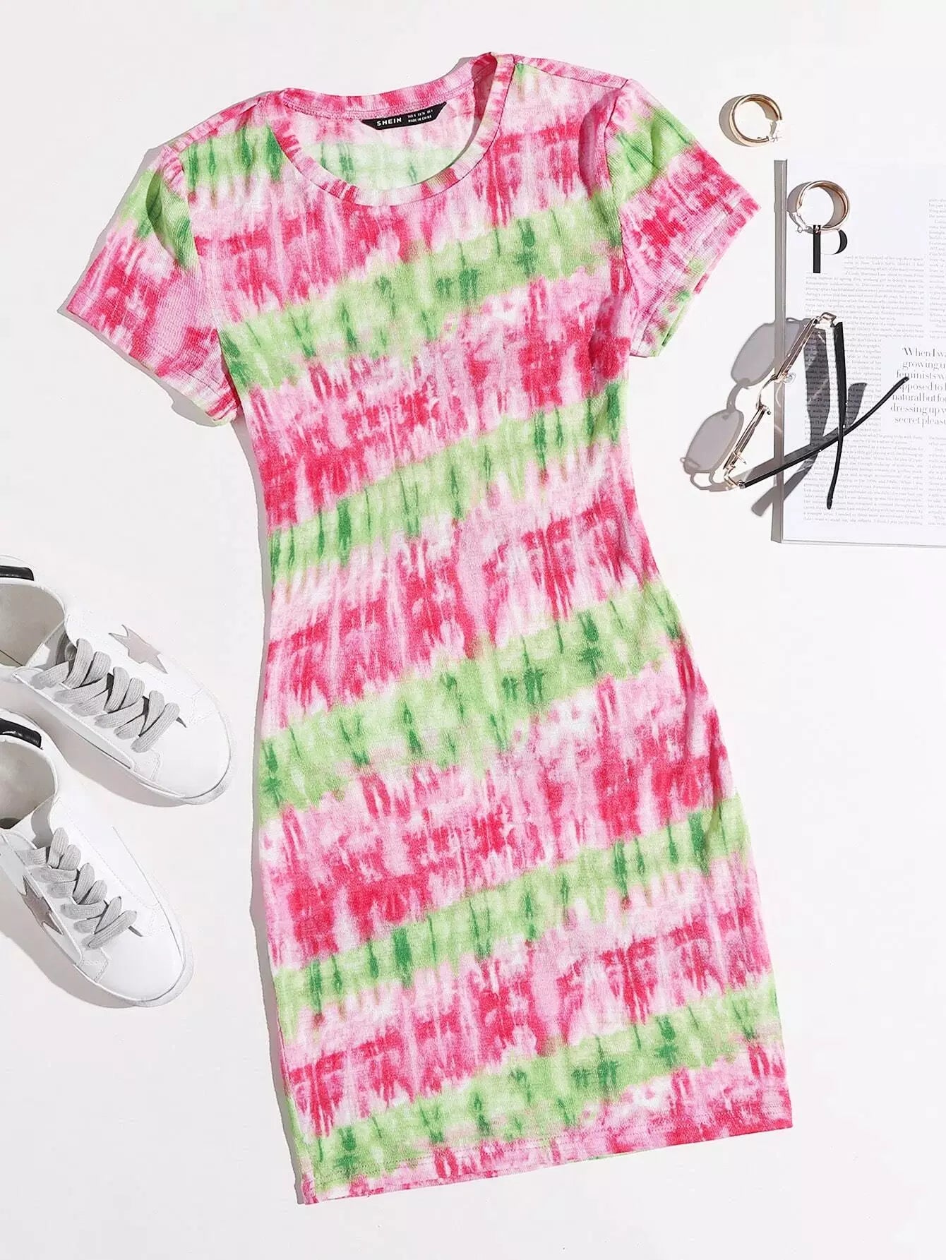 فستان بوديكون مصبوغ بربطة عنق مصبوغ