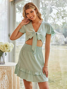 فستان بربطة عنق أمامي بقصّة أمامية على شكل حرف A