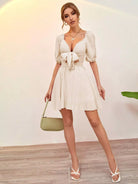 فستان بربطة عنق أمامية بربطة عنق على شكل حرف A