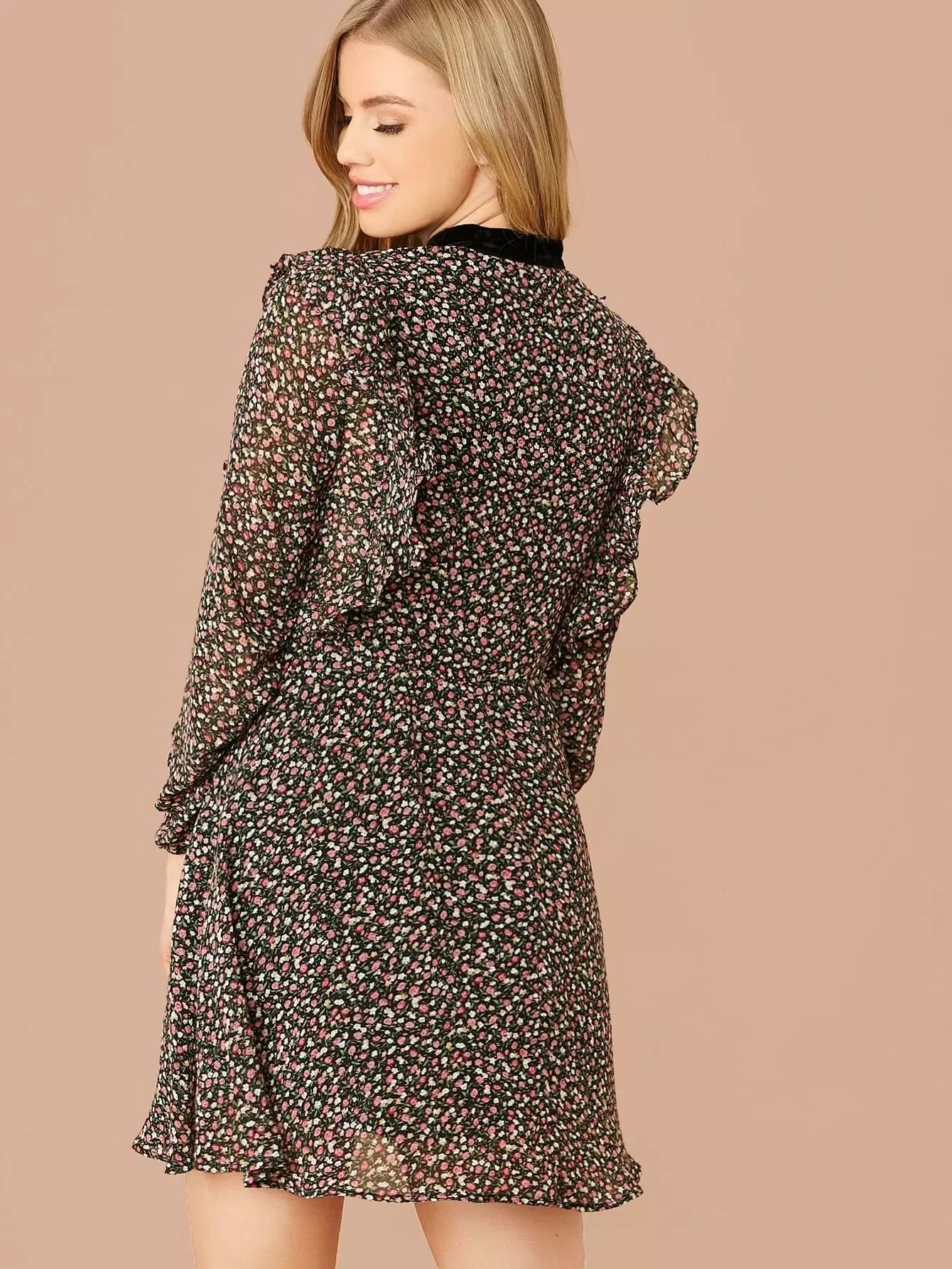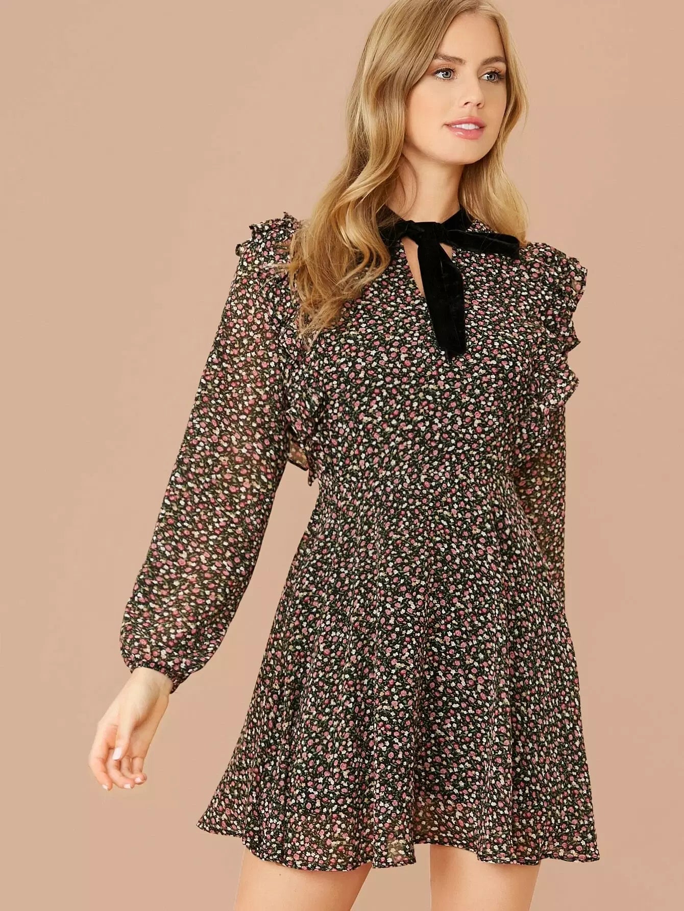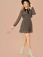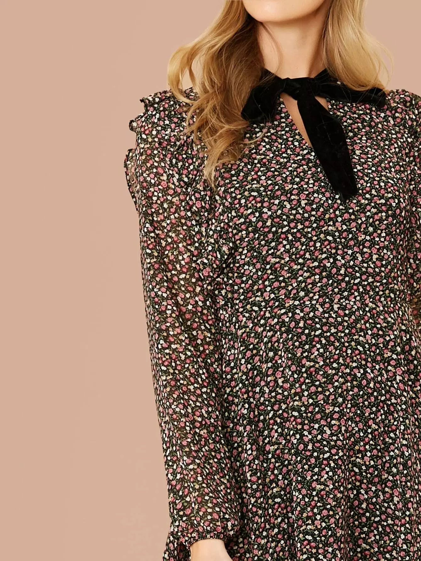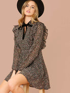 فستان ديتسي مزين بكشكش بياقة ربطة عنق مكشكشة
