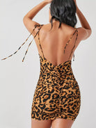 فستان ليوبارد بربطة كتف مفتوحة من الخلف مكشكش من جلد النمر