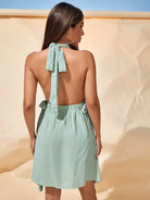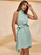 للنساء - فستان مربوط بحاشية غير متماثلة وظهر مكشوف