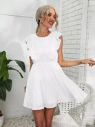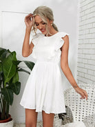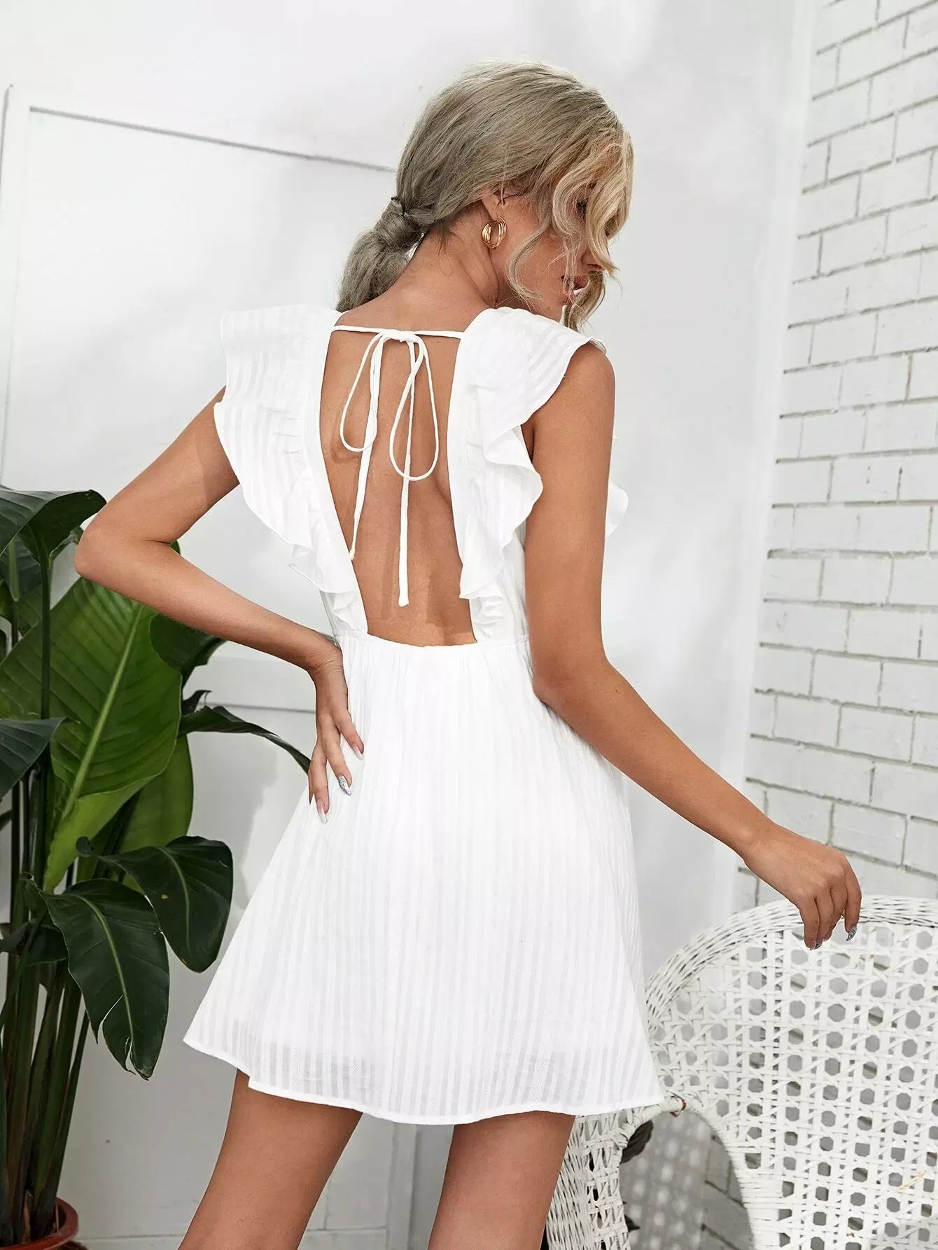 فستان بفتحة ذراع مكشكش مفتوح من الخلف ومربوط ومفتوح من الخلف