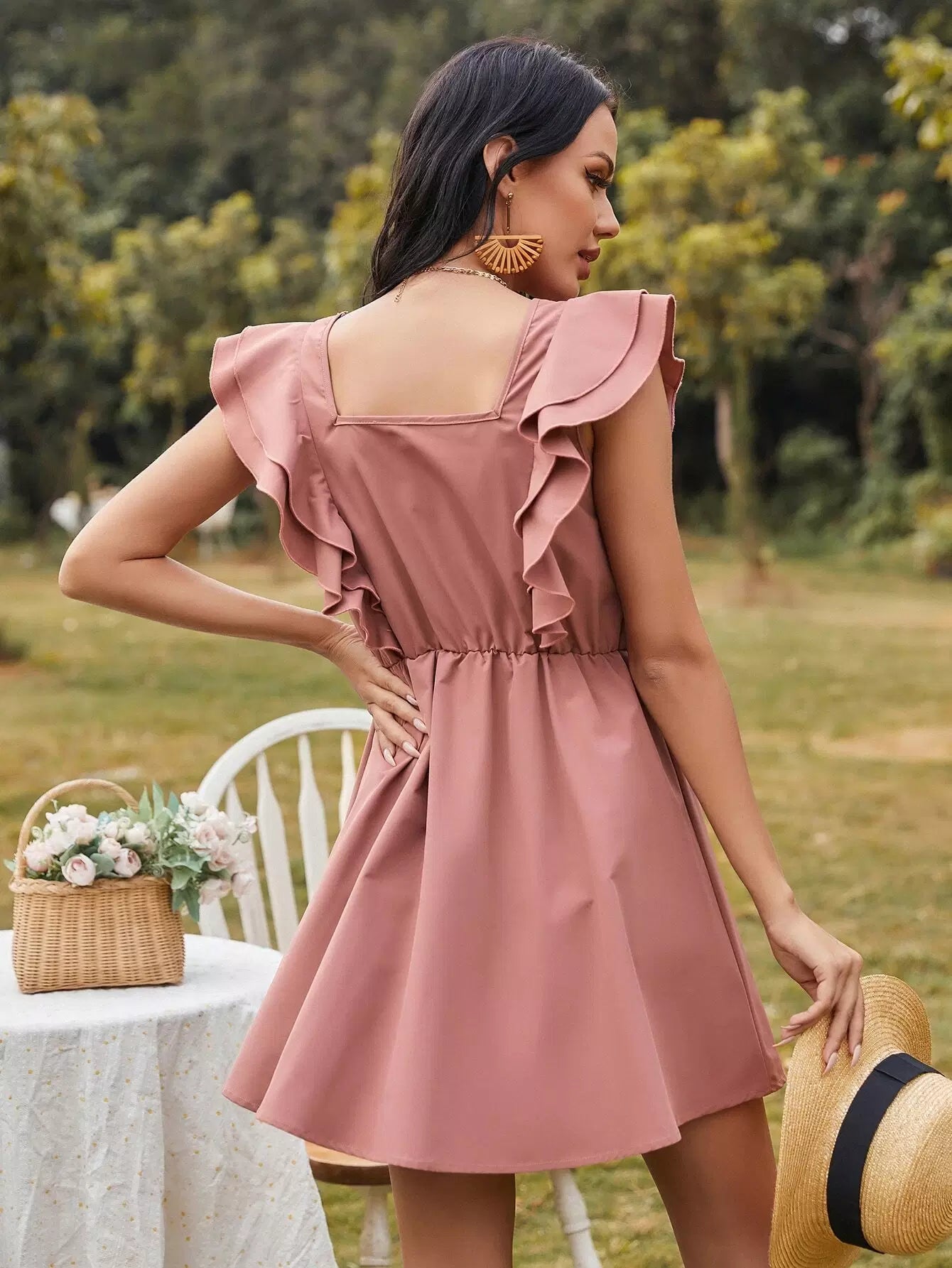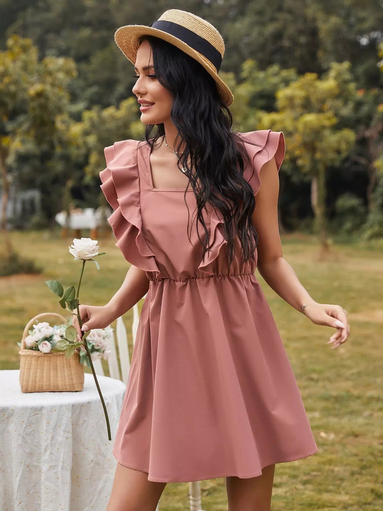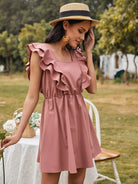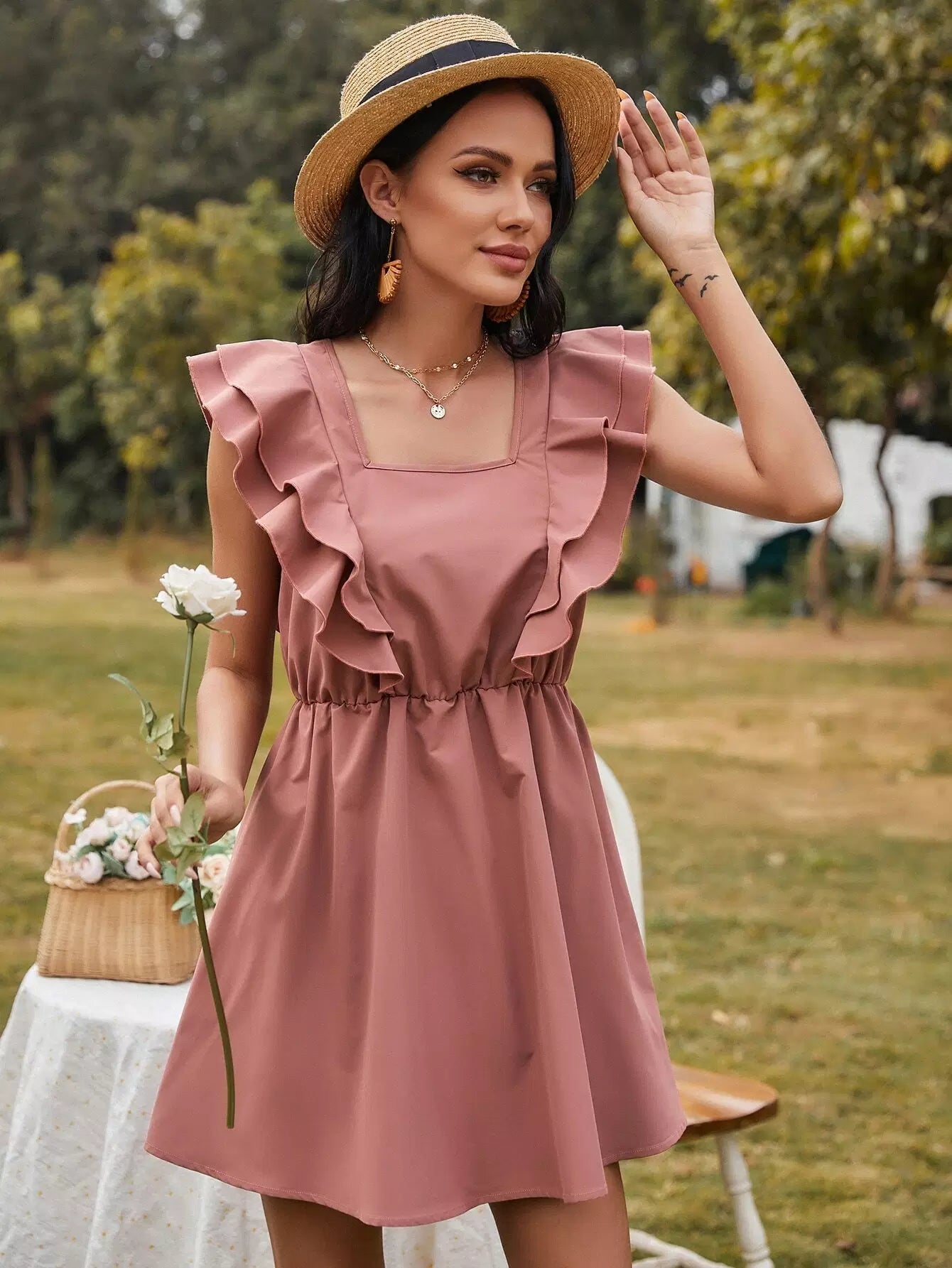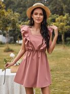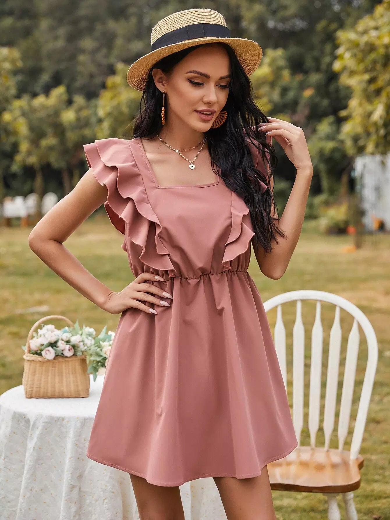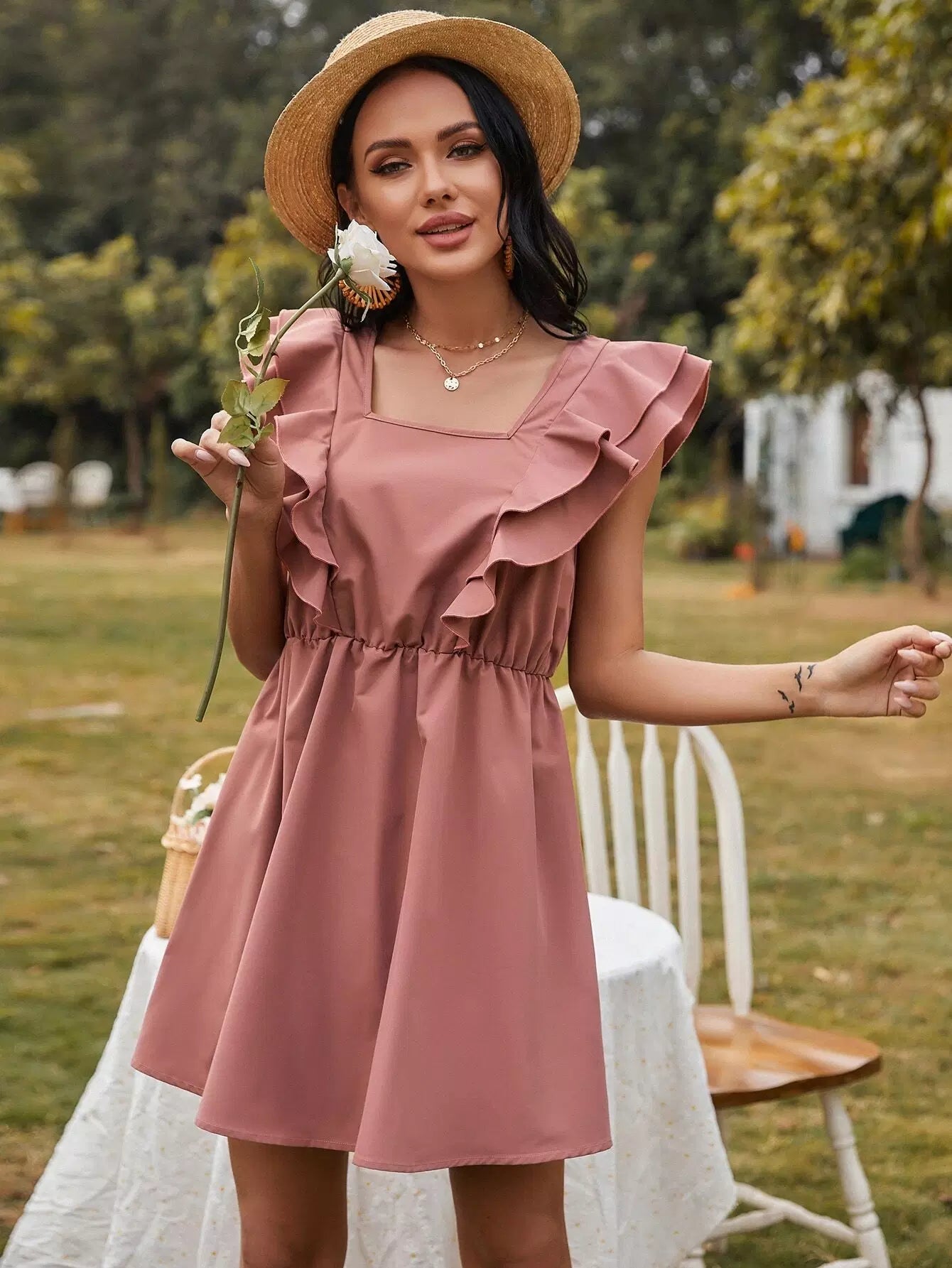 للنساء - فستان سادة على شكل حرف A بحواف كشكشة متدرجة