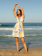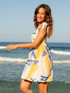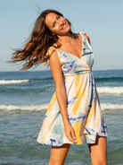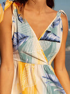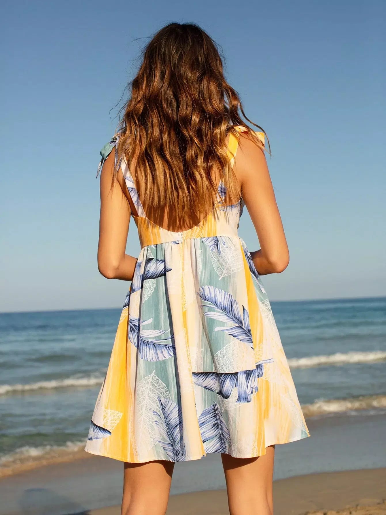 فستان كامي بطبعة استوائية بطبعة استوائية عاري الظهر بحافة واسعة