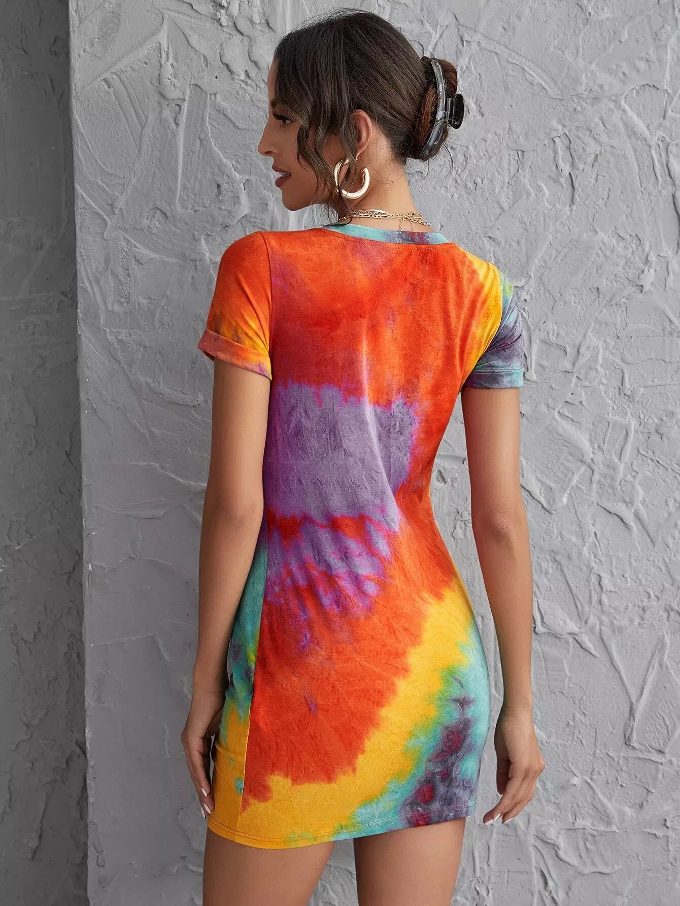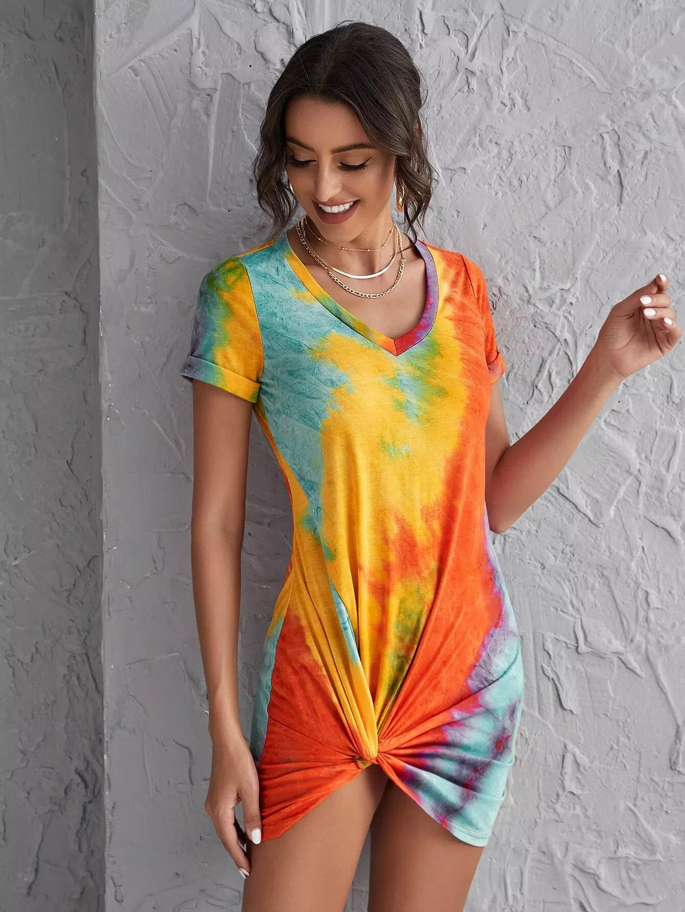 فستان بحافة ملتوية مصبوغ بربطة عنق ملتوية