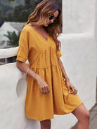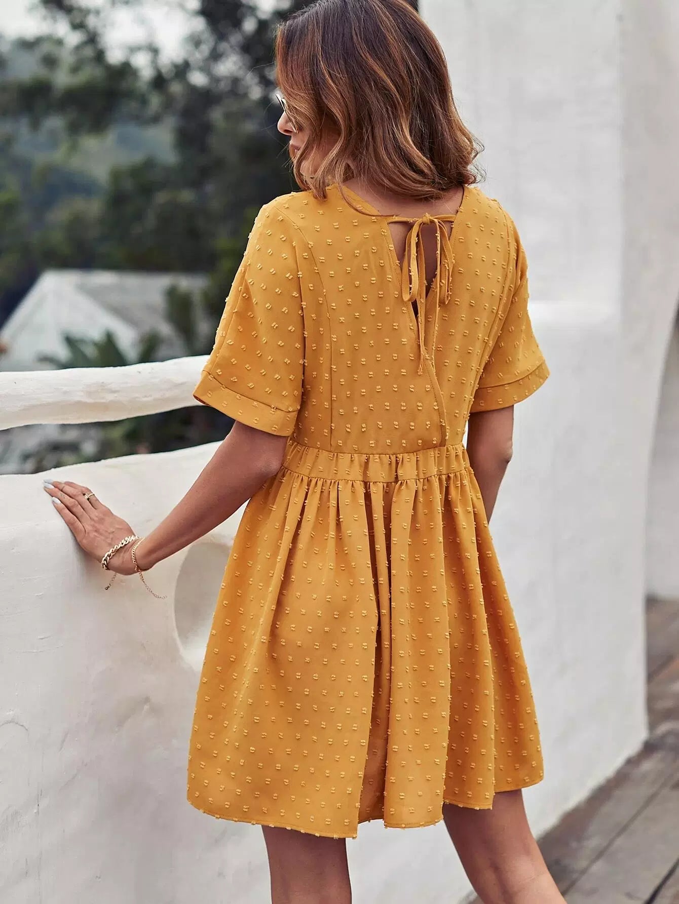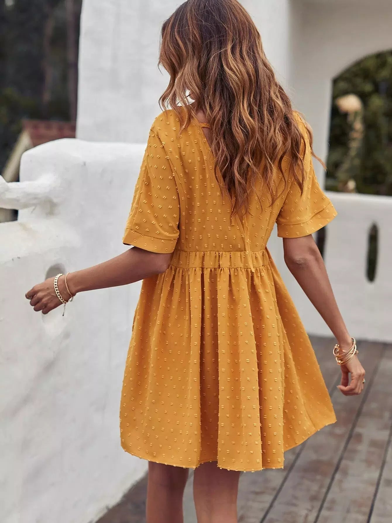 فستان سموك منقّط على شكل V بياقة على شكل V