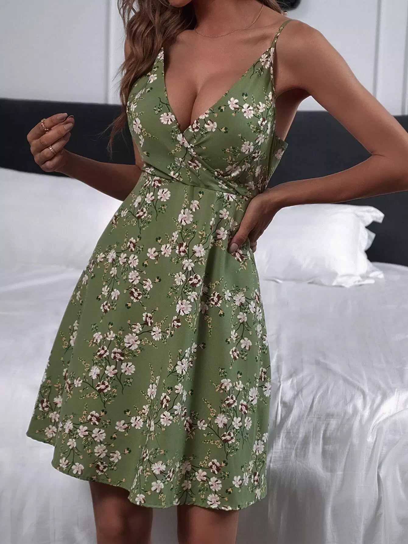 فستان كامي بطبعة زهور مع سحاب خلفي